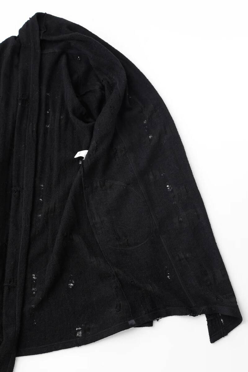 ■型番 KO-HT19-058 ■サイズ M / 着丈: 87センチ / 身幅: 51センチ / 肩幅: 43センチ /袖丈: 74センチ ※素人の採寸の為、多少の誤差はお許し下さい。 ■カラー BLACK ■素材 アクリル50% ウール50% ■状態 未使用:随所にダメージ加工が施されておりますので、神経質な方はご入札をお控え下さい。 ※もともとの小傷やスレを気にされる方はご入札をお控え下さい。 ■付属品: 写真に写っているものが全てになります。