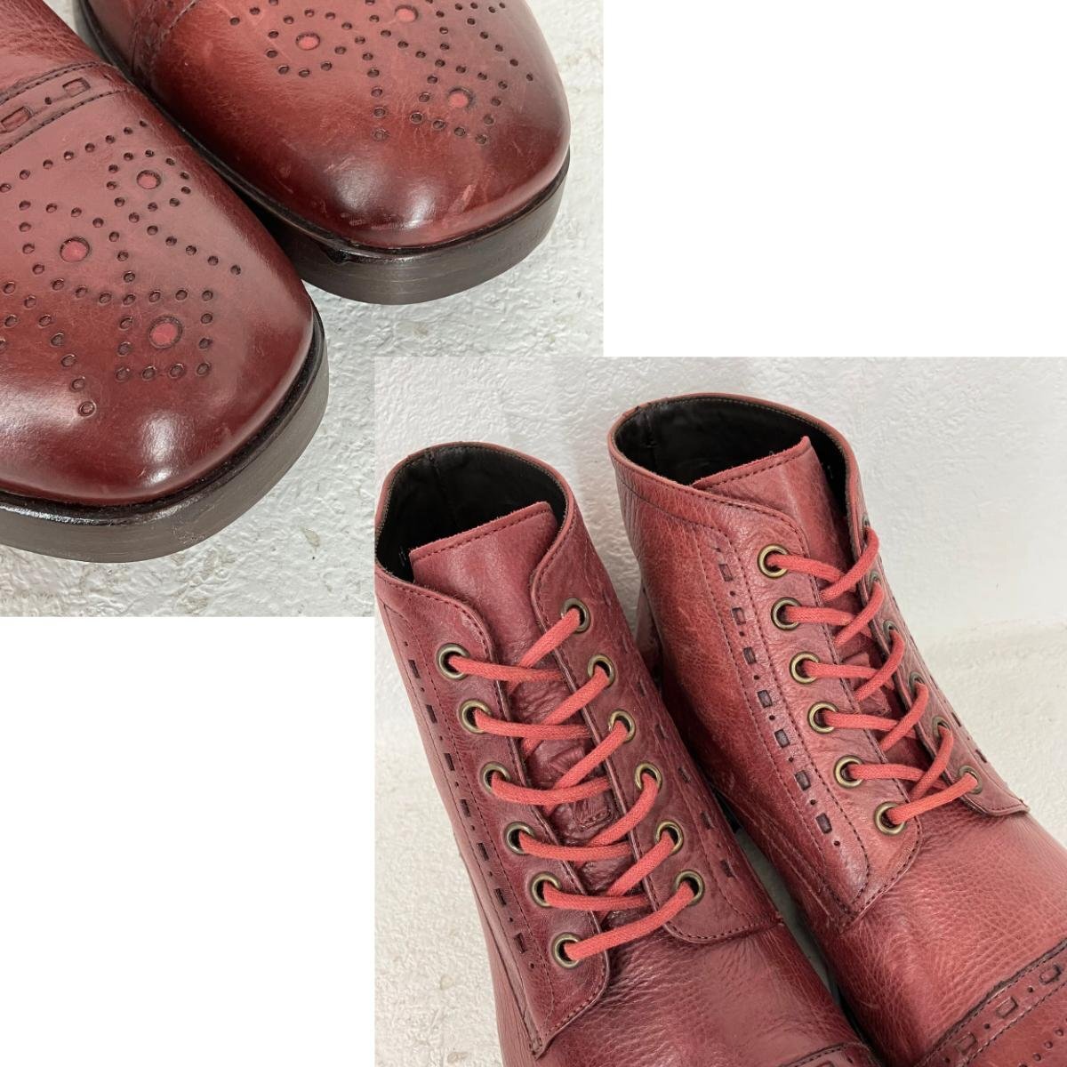▼SIZE:41 ・幅:約10.5cm ・アウトソール:約29cm ※あくまでも参考サイズですのでご了承下さい。 ▼color:赤茶 ※色の判断は出品者の主観で判断しております。 メーカーとカラーの表現が異なる場合があります。 ▼付属品:箱 ※付属品は写真に写っているものが全てになります。 ▼商品説明 ・数回程度の使用感があります。 ・レザーにキズやスレ等があります。 ・多少のキズ等があります。 ・着用に支障をきたす汚れ、ダメージは見受けられません。 ・付属の箱は小キズ等のダメージがあります。 ※こちらの商品は、お宝あっとマーケット町田店(直営店)と併売しております。 当店にてご入札が確認出来次第、店舗での販売を終了させていただきます。 また、店舗で売れた際はYahoo!オークションをキャンセルとさせていただきます。 ご落札していただいても、時間差で売切れの場合がございます。 予めご了承の程よろしくお願い致します。 商品状態は当店にて検品、確認を行い商品情報へ記載しておりますが、 記載外の微細な汚れ、シワ、スレ、ダメージなどがある場合がございます。 予めご了承頂けますようお願い致します。 |