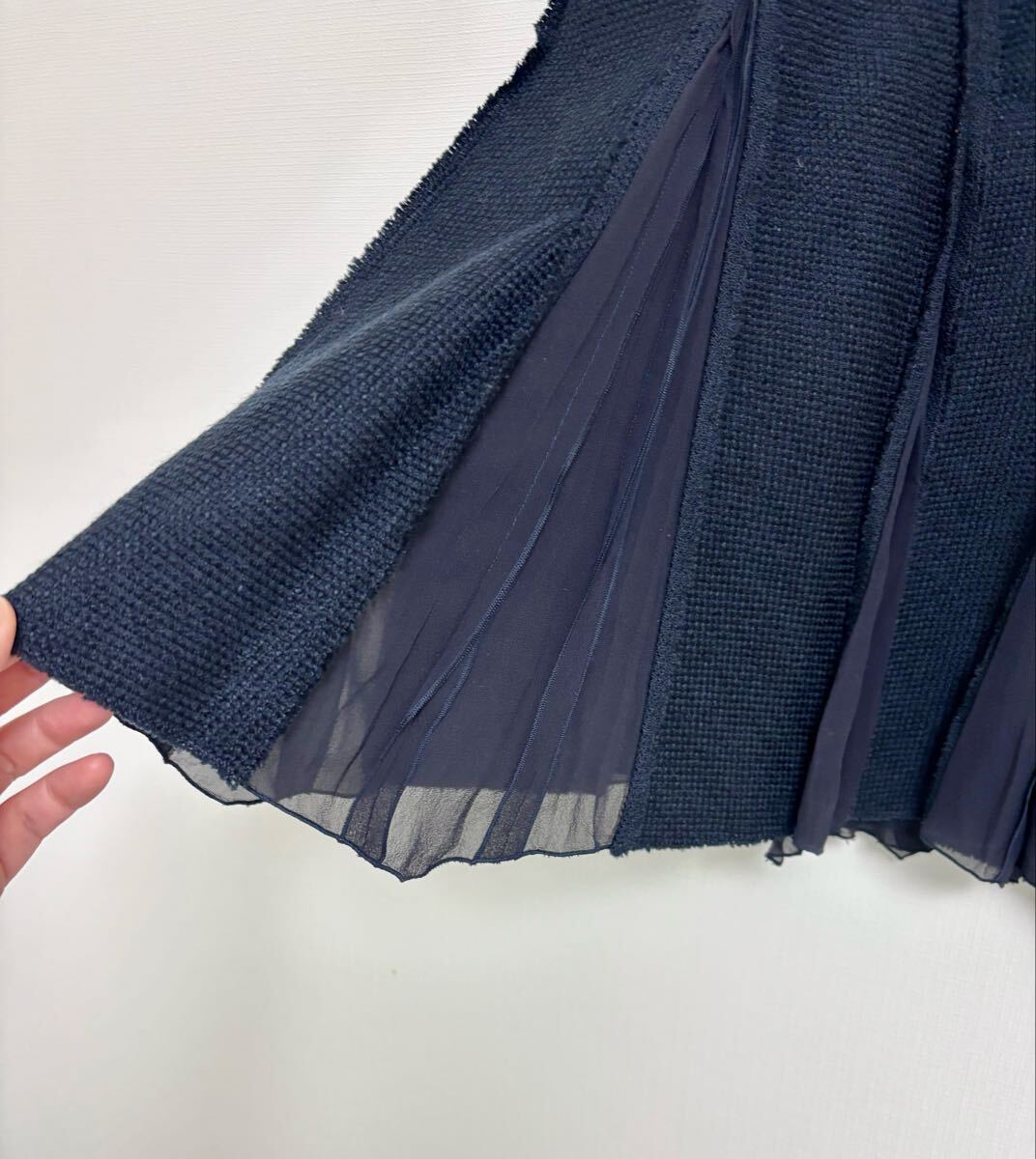 ウール生地とシルクシフォンの組み合わせが特徴の濃紺のプリーツスカートです。| 出价者 | 信用 | 价格 | 时间 |