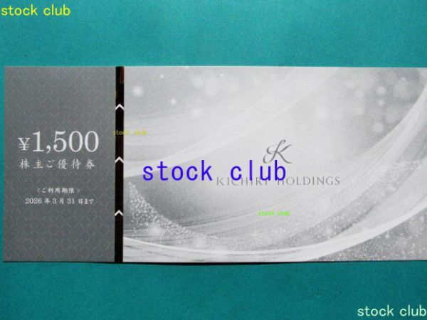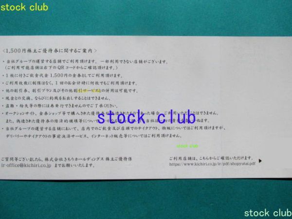 きちり株主優待の株主優待券1,500円券1枚です。