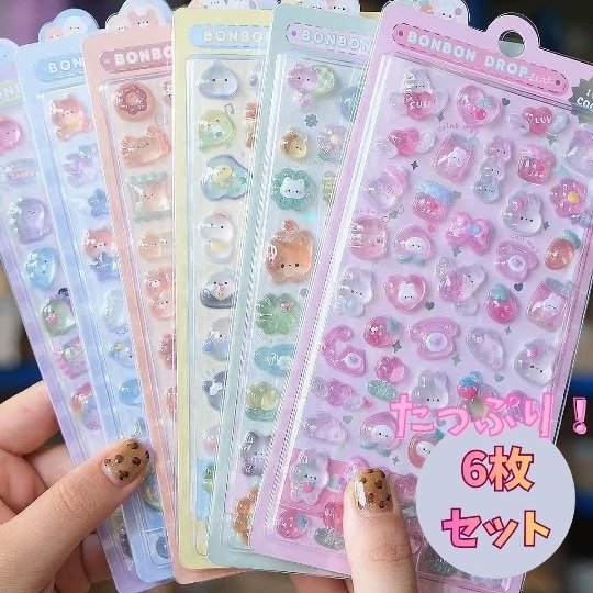 まるでドロップキャンディのように、ぷっくりと膨らんだ透明感のあるデザインが魅力のシールセットです。