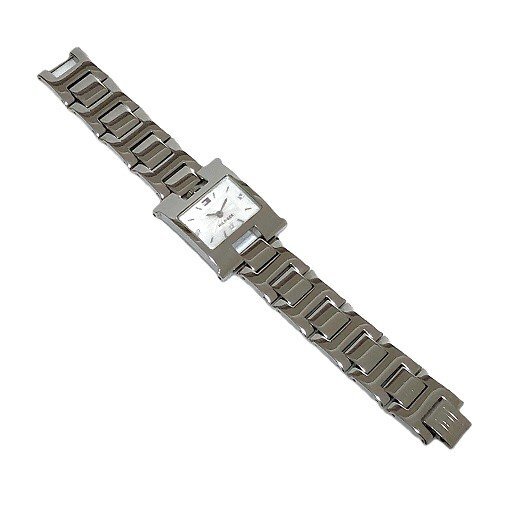 | 動作確認済み ケースサイズ:約3cm×2.6cm 厚み:約7mm ベルト幅:約1.6cm 腕周り:約15cm カラー:シルバー ベルト幅:約1.6cm 付属品:箱 説明書 ■ クラシカル&エレガントなデザイン 長方形フェイスを採用した、上品で洗練されたフォルム。スーツやフォーマルコーデにもマッチし、大人の女性の手元を美しく演出します。 ■ 信頼のクォーツムーブメント 正確な時を刻むクォーツ(電池式)ムーブメントを搭載。メンテナンスも簡単で、日常使いに最適です。 ■ コンパクトで女性らしいサイズ感 細身でエレガントなサイズ。小ぶりなフェイスが女性の腕元に程よくフィットします。 ■ 高品質ステンレスケース&バンド 光沢仕上げのステンレスケースが高級感と耐久性を両立。 ■ 視認性と装飾性を両立したホワイトの文字盤 インデックスにはダイヤモンド風マーカーを採用し、視認性とデザイン性を両立。 ■ 防水性能:日常生活防水(30m) 洗顔や雨程度の水濡れに対応可能な3気圧防水仕様。 ■状態 やや小傷がありますが、目立つダメージ無く全体的に良い状態です。フェイスは綺麗です。 【ランク】AB ・お支払い方法 | ・クレジットカード決済 | ・PayPay銀行 ・楽天銀行 ・ゆうちょ銀行 ・発送方法 | ・ 特別配送