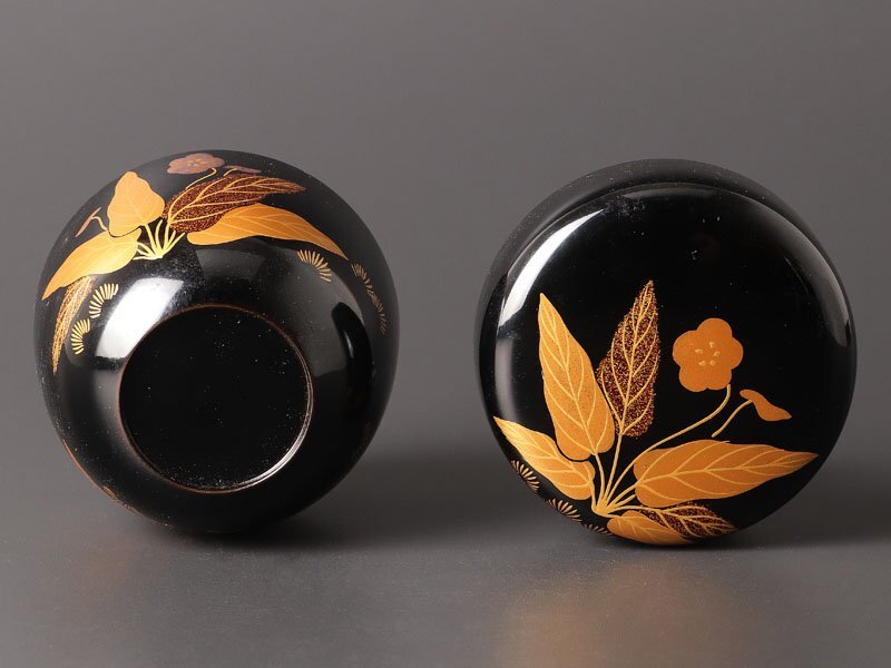 黒と金色のコントラストが美しい、力強いスミレの絵柄が施された棗です。 ★商品は初瀬川柳庵作、即中斎書付の作品である事を保証致します。 |