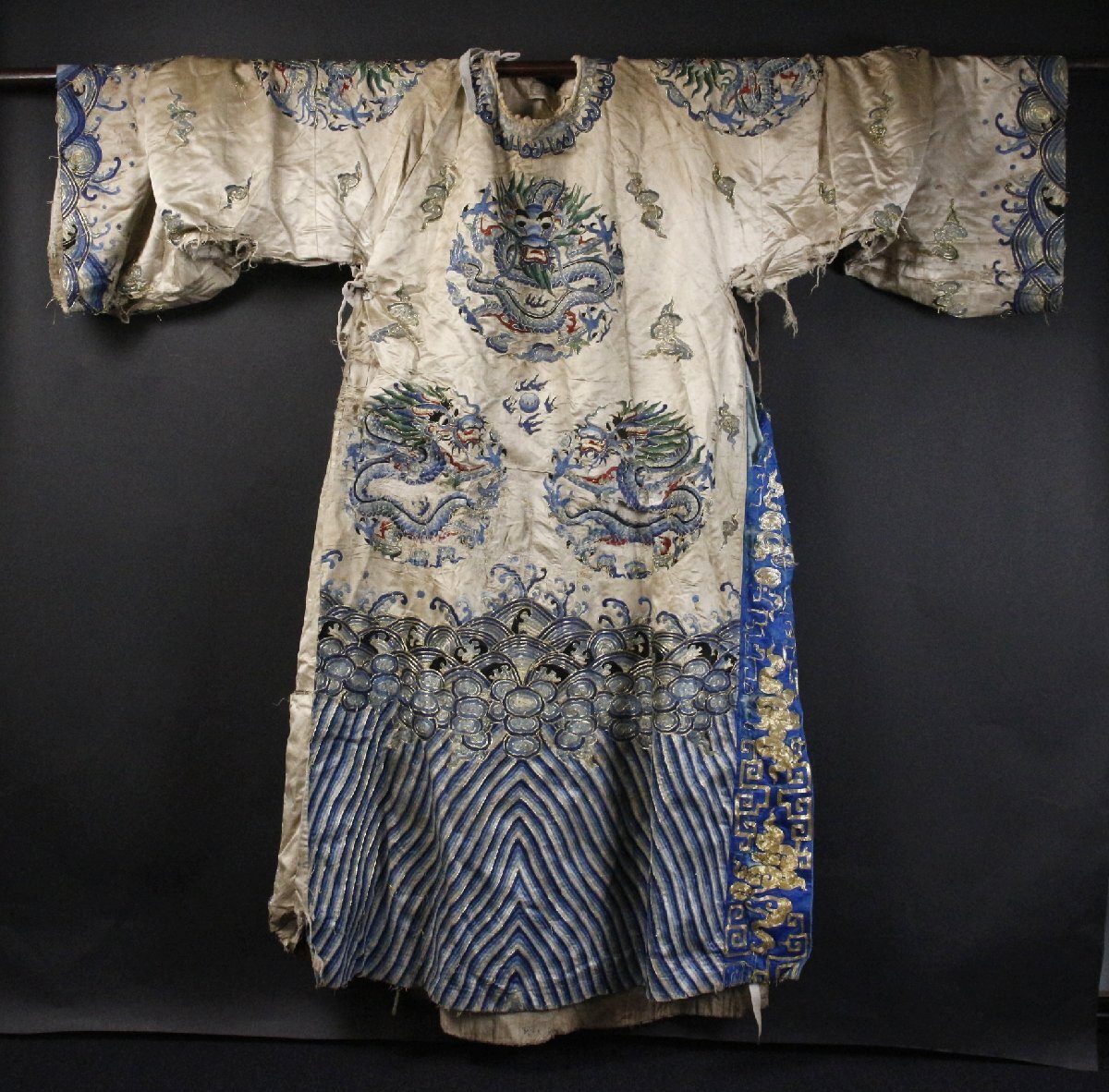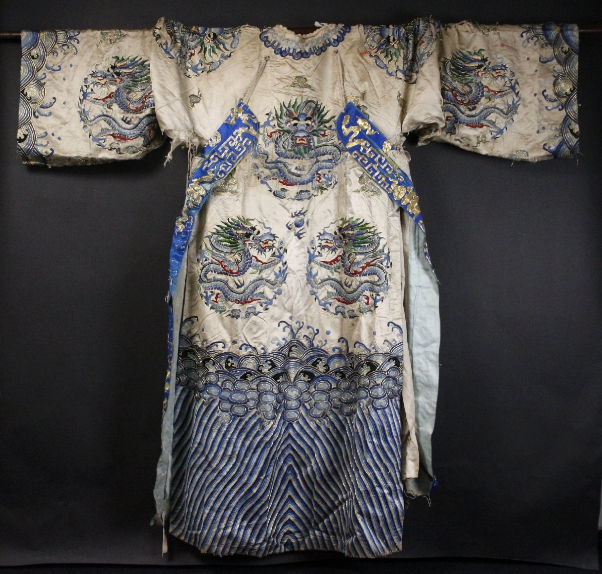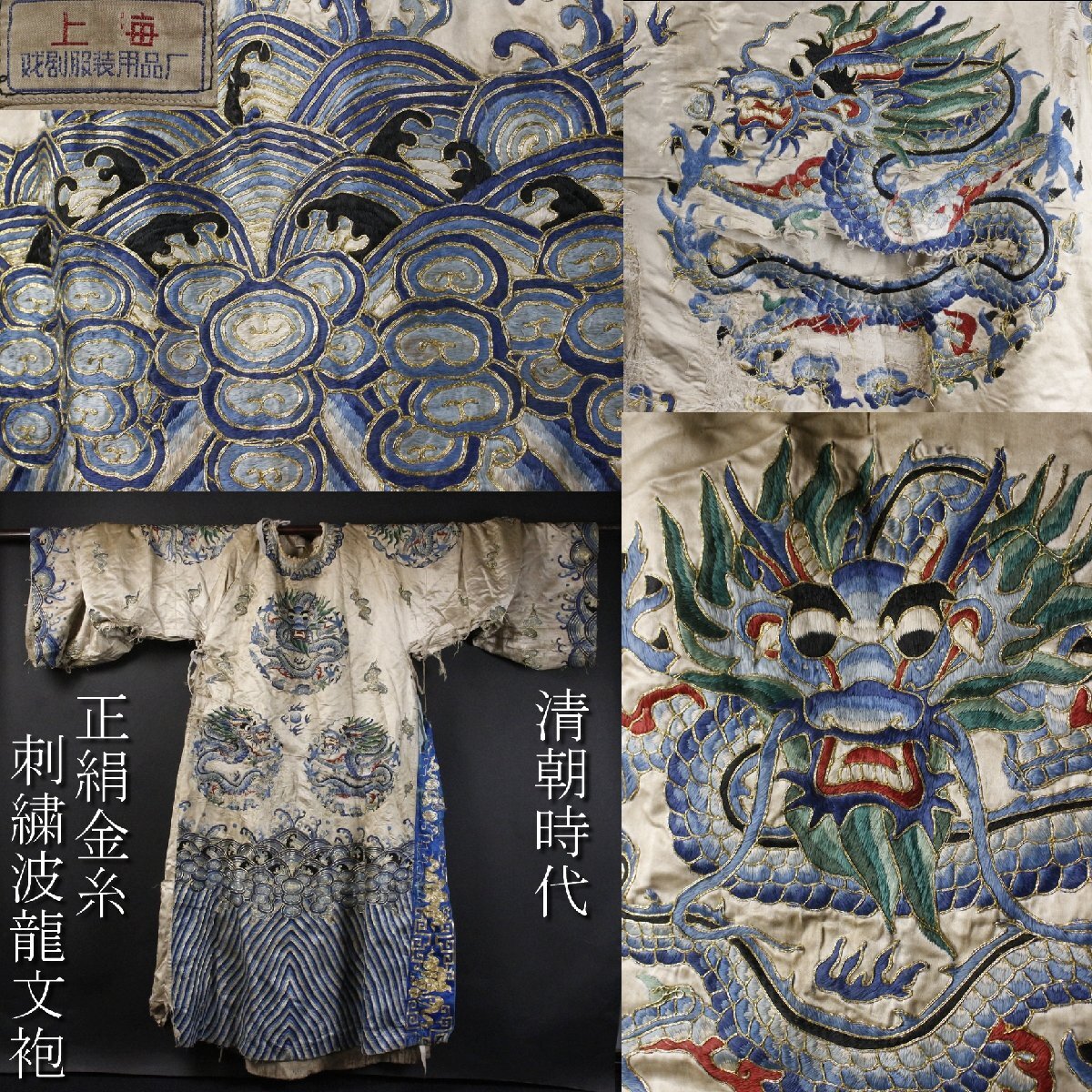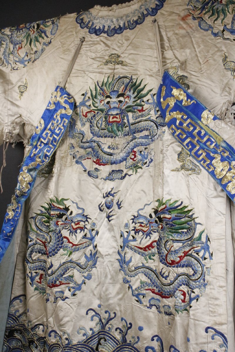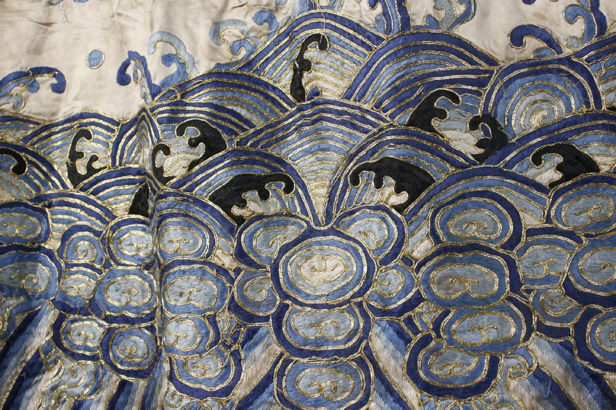 ④ [-RPP]25.10 25100317* * * 商品詳細 * * * ここでしか出逢うことのできない唯一の美をご紹介させて頂きます。 まさに着る芸術品ともいうべき見事な逸品です。 「刺繍波龍文袍」は、中国宮廷の皇帝や皇族が着用した「龍袍」と呼ばれる公式な衣装で、 中心に「波龍」が描かれたものです。 皇帝の権威を示すため龍の爪の数や色分けによって身分が示されています。 刺繍は実に細密で一針一針丁寧に造られたことが伺え 龍の表情や鱗一枚一枚、波しぶきを上げる波が優雅に描かれています。 隅々まで神経の行き届いた、まさに芸術作品というべきお品を この機会に是非、お手元にてご堪能ください。 ■サイズ/身丈147cm 裄丈109cm 袖丈40㎝ ■状態/経年による傷み、スレ、焼け、シミ、ほつれ、破れ、直しがございます。 ※写真にてご確認、ご了承の上ご入札下さい。 ![]() * * * 支払詳細 * * * !かんたん決済 * * * 発送詳細 * * * 入金確認後3営業日以内に発送致します。 ※直接引き取りも可能です。 60~160サイズにつきましては 佐川急便、ゆうパックのどちらかで発送いたします。 ゆうパック発送の場合、弊社の発送日から追跡サービスに問合せ番号が反映されるまで 約1日ほどお時間がかかりますのでご了承下さい。 * * * 注意事項 * * * 運送中の破損があった場合は速やかに当社までご連絡下さい。 保険を利用するのに受取連絡後に運送会社による現場での破損状況確認が必要となります。 勝手に返送されますと保険の適用外となりますのでご注意ください。 * * * * * * お問い合わせ:082-236-8669 |