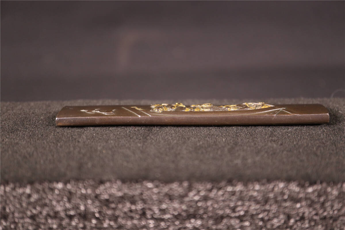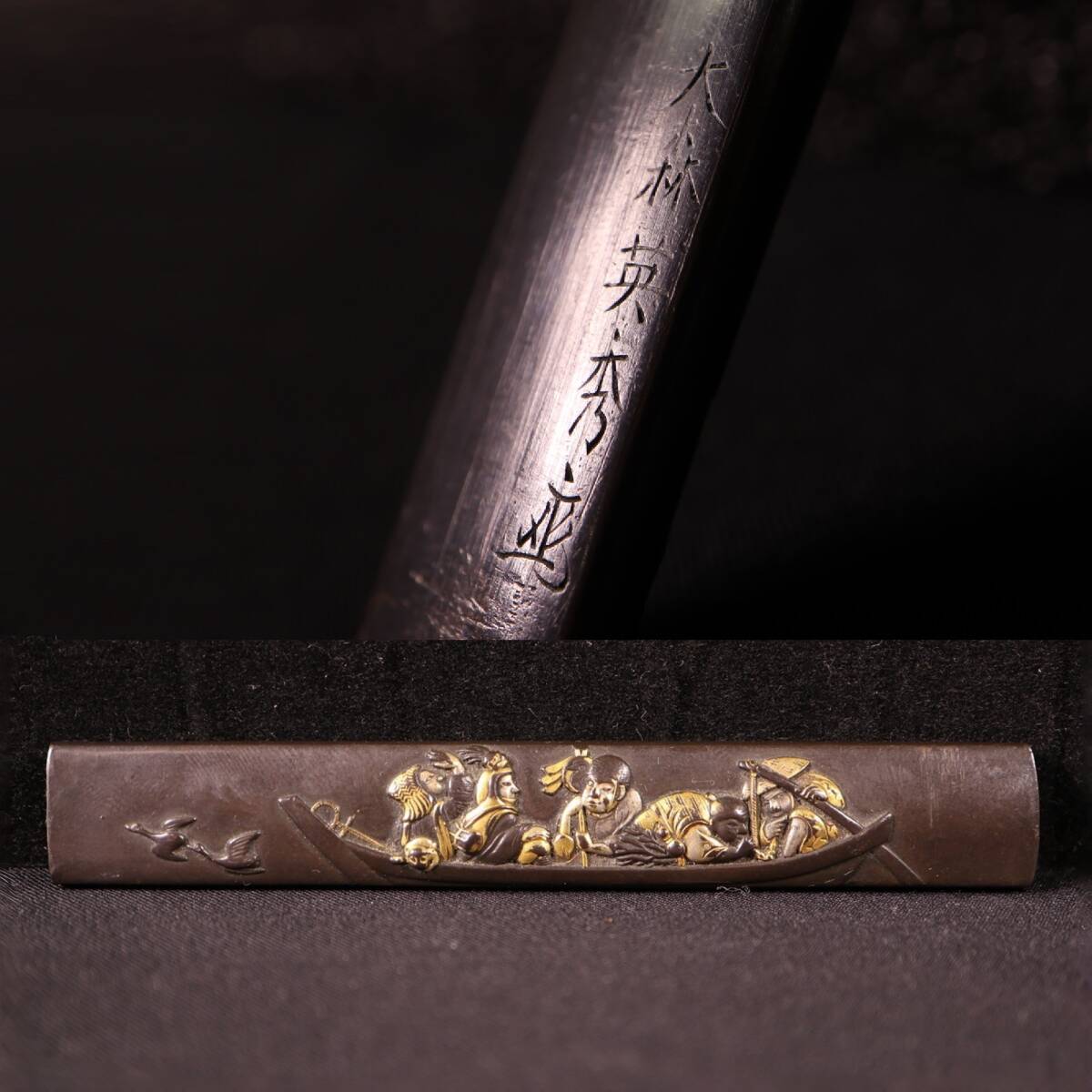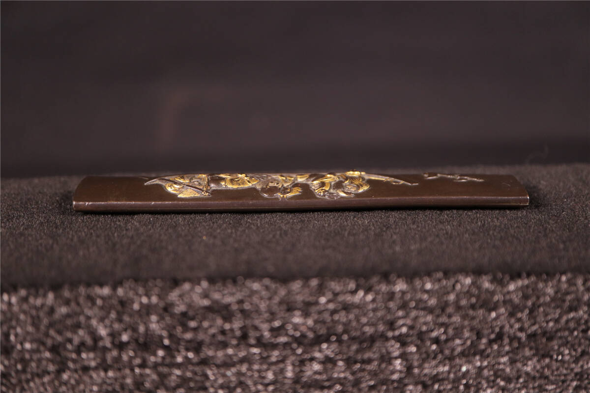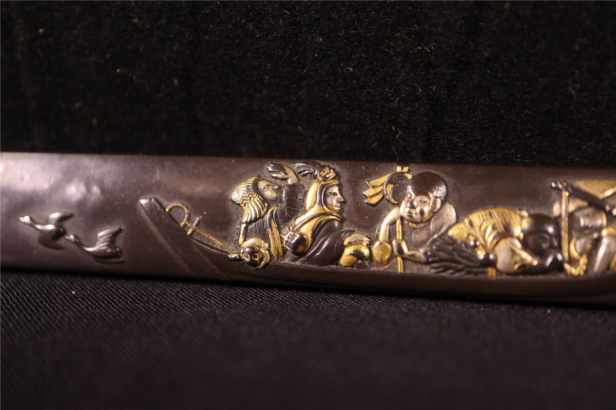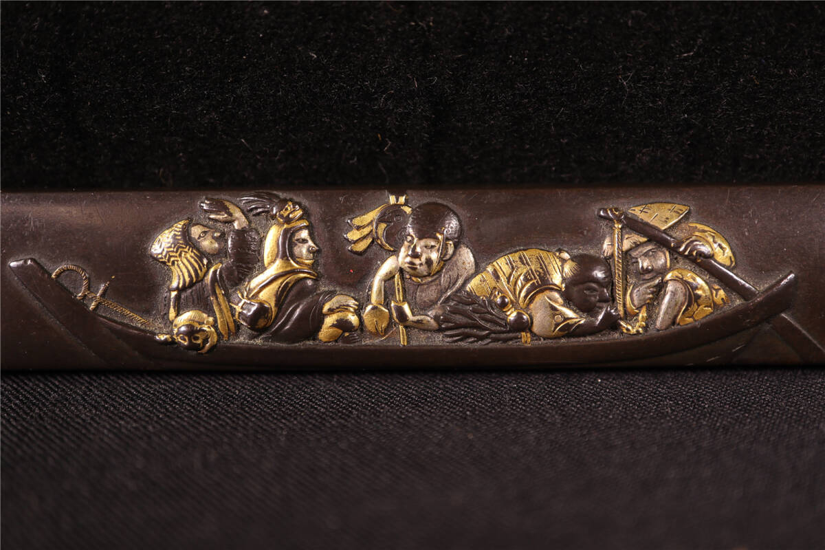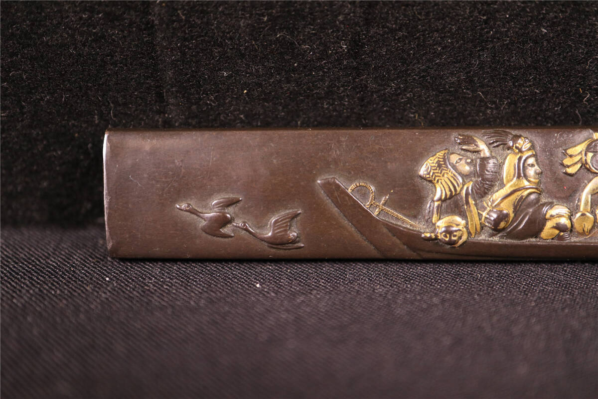 | 大森英秀 花押 赤銅 象嵌色絵 船人図 小柄 時代武具 刀装具 |