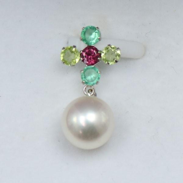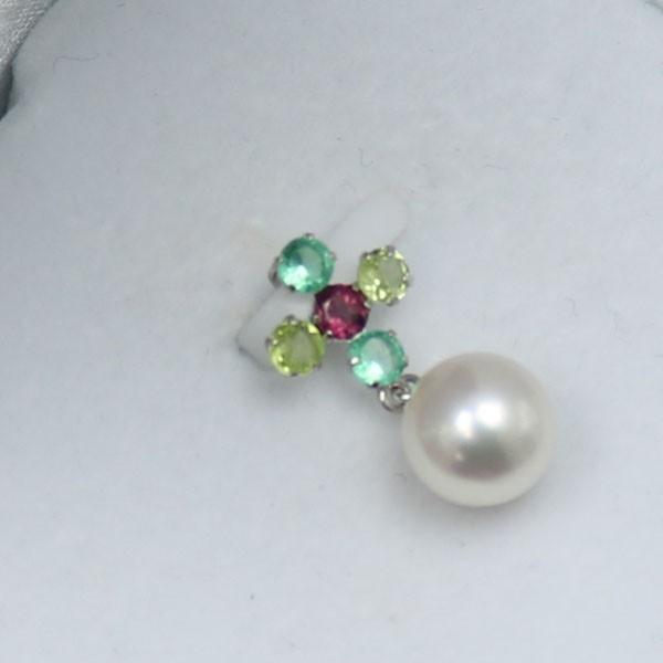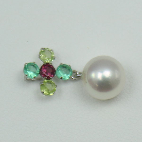 あこや真珠8.25-8.5mmパールペンダントです。ホワイトピンク基調の美しいパールであこや真珠ならではの輝きです。 | グリーンクオーツ、ペリドット、ロードライトガーネットの半貴石輝くホワイトゴールドパールペンダントです。 | |||