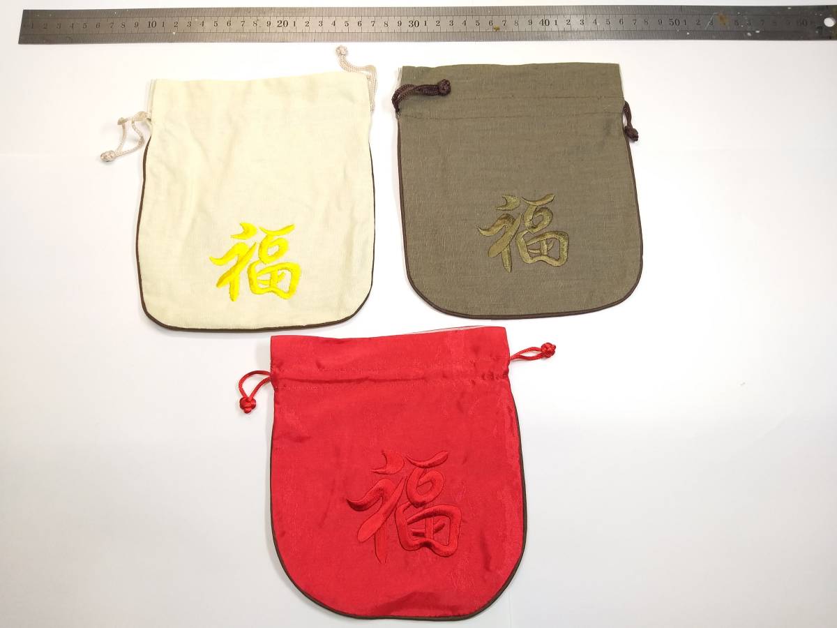 2.12枚目の写真をご覧ください。巾着には最も高級な”立体浮き彫り刺繍技術”が使用されております。