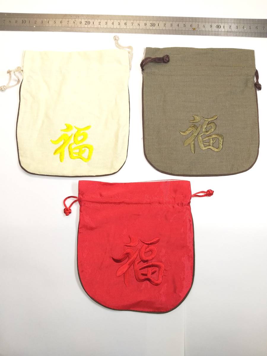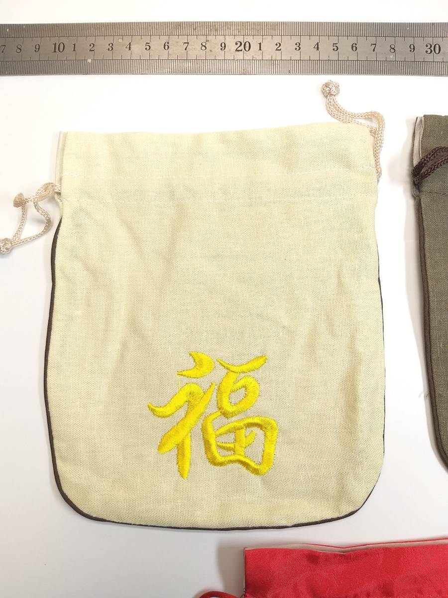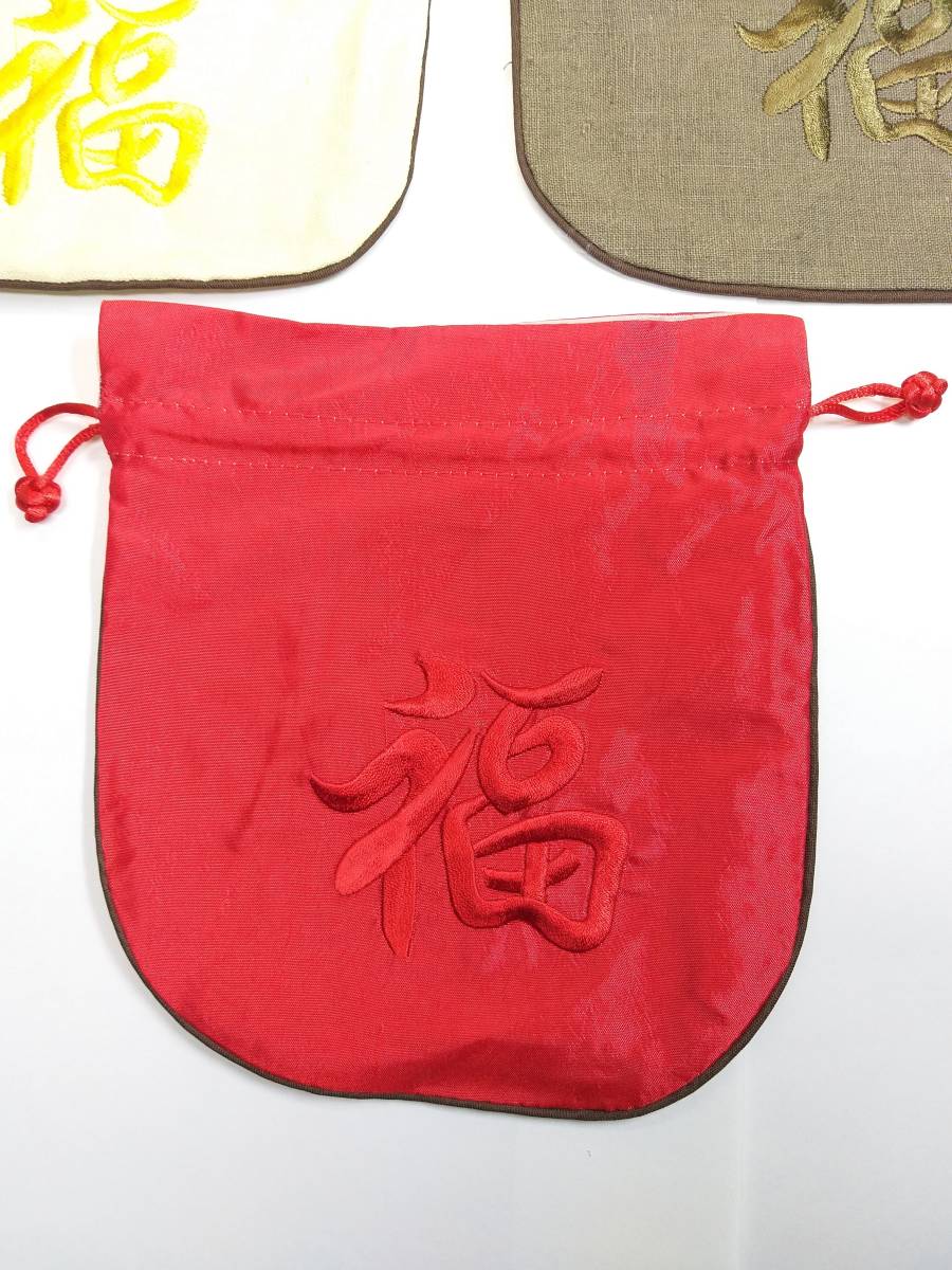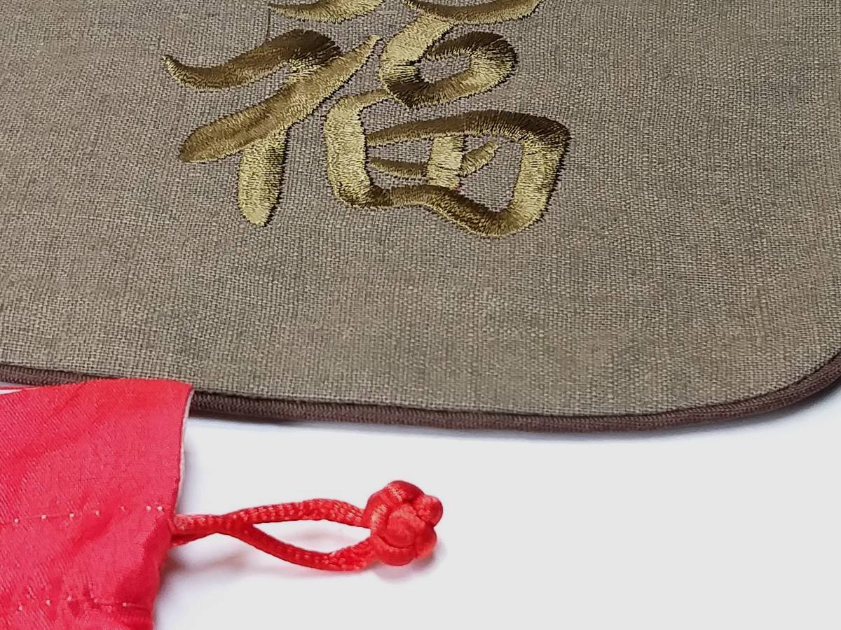 ●簡要説明:この出品は、最高級手工芸極品特大両面立体刺繍麻絹製巾着『福』です。新品未使用です。