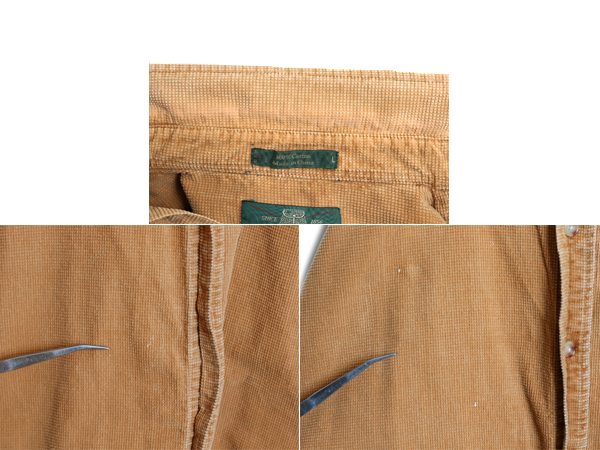 90年代のオールド 旧タグ オービスの長袖 シャツ です ORVIS社は、アメリカで1856年に設立され、 150年以上の歴史あるフィッシング、アウトドア用品で有名な会社です。 素材は、100% COTTON ( コットン ) しっかりとしたヘビーウェイト 通常の畝のあるコーデュロイとは異なった 格子状の凹凸の変形コーデュロイ 他ではまったく見かけない独特の素材が使用されています。 人気のボタンダウンスタイル 左胸にボタン留めのパッチポケット付き 合わせやすい、ブラウンボディ お探しの方も多い無地 老舗オービスらしい、素材、シルエットにこだわった 使い勝手の良いシンプルなデザイン ゆったりとした、人気のシルエット 1枚で様になる着回しのきく商品です。 |