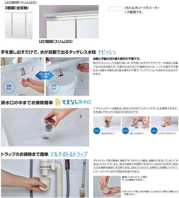 3面鏡(全収納・スリムLED照明)