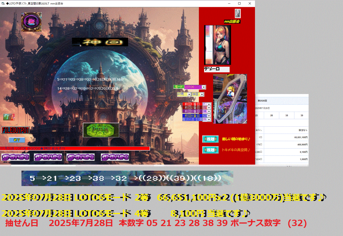 [◆LOTO予想ソフト_異空間の扉2025LT]07月28日 LOTO6 ☆GOGO★神回 総合点71