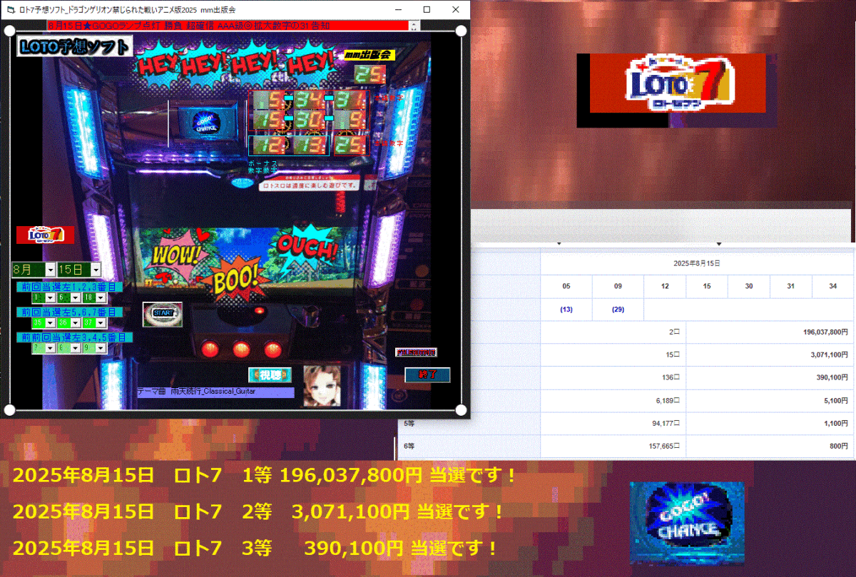 [ロト7予想ソフト_ドラゴンゲリオン禁じられた戦いアニメ版2025]8月15日★GOGOランプ点灯 勝負 超確信 AAA級◎拡大数字の31告知【特注日】