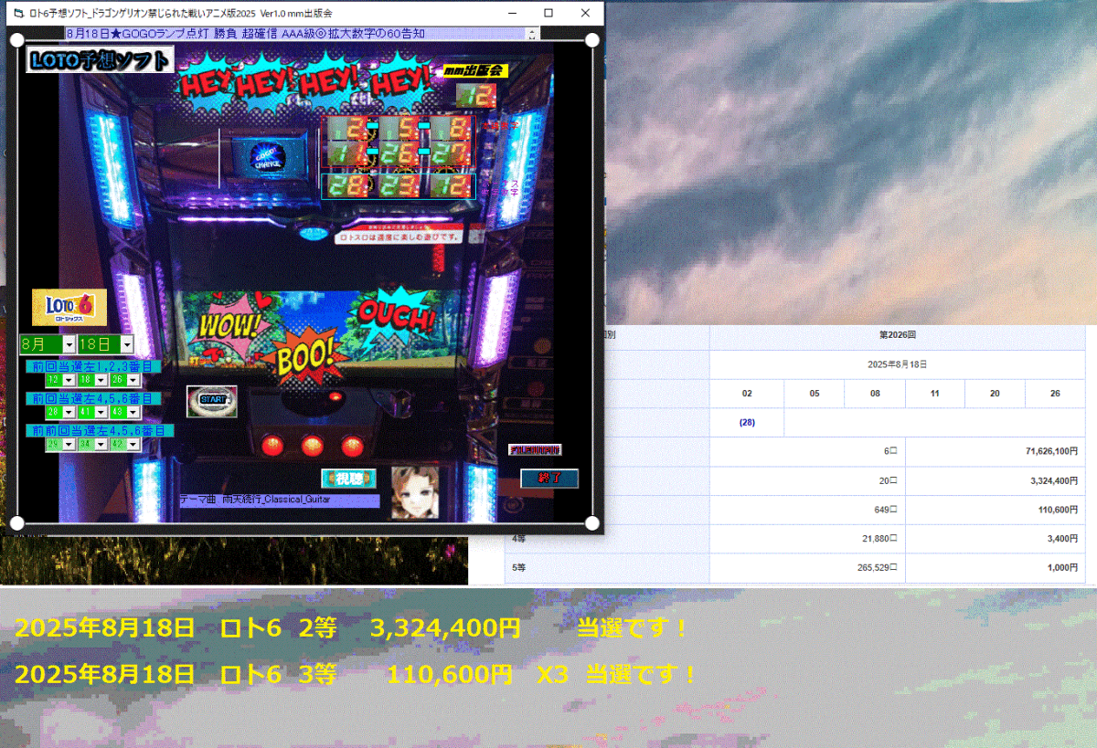[ロト6予想ソフト__ドラゴンゲリオン禁じられた戦いアニメ版2025]8月18日★GOGOランプ点灯 勝負 超確信 AAA級◎拡大数字の60告知【特注日】
