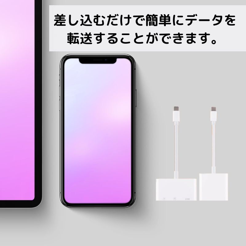 | 商品説明 | SDカードリーダー iPhone iPad データ転送 動画転送 Type-C 2in1SDカードリーダー SDカードとMicro SDカードの両方が使用可能です。 (ただしSD/TFカードリーダーを同時には使用できません) デジカメやスマホで撮った写真データを、ほかの機器へ転送するときに活躍するSDカードリーダーです SNSに写真をアップするときのツールとしても重宝します。 柔軟性のある柔らかなケーブルを採用しており、折り曲げて使用して頂く事も可能です。 【 使用方法 】 ①スマートフォンをケーブルに差し込みます。 ②SDカードを挿入口に差し込みます。 ③スマートフォンが自動的に写真アプリを開き、 インポートアイコンがポップアップ表示されますので、タップ ④インポートしたい写真を選択します。完了です。 カラー:ホワイト 接続口:Type-C 重量:約15g USB2.0速度 対応OS:iOS13以降 SDカードアダプターは、SD / SDHC / SDXC / micro SD / microSDXCメモリーカードと互換性があります。※microSDを使用する場合は別途でアダプタを購入する必要がございます。 ※挿入口に差し込む際には、優しく差し込んでください。 ※水気の少ない場所でご使用頂きますようお願いいたします。 |