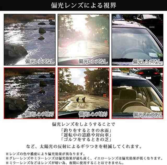 | 偏光レンズを使用したスポーツサングラス。 【偏光レンズ】 路面や水面や雪面のギラつきをはじめ、自動車やビルのガラスからくる眩しい反射光などをカットして、視界をクリアにするレンズです。 単にまぶしさを軽減するサングラスとは違い、レンズとレンズの間に特殊なフィルターを挟みこむことで紫外線や反射光を除去し目に優しい自然光だけを通す働きがあります。付属の偏光テスター付き。 自転車、運転、釣り、ゴルフ、登山などあらゆるシーンで活躍してくれるサングラス。 ■カラー:リボ ■サイズ:(約)レンズ横幅13.5cm×縦6cm×フレーム横幅14.5cm (実寸計測につき誤差はあらかじめご了承ください) ■素材・レンズ・フレーム:プラスチック ■可視光線透過率:10% ■紫外線透過率:99.9%以下 ■重さ:35g ■付属品:偏光テスター、専用ケース ■新品・未使用 ※ご覧のモニターやプラウザの設定、照明等により、画像と実物の色合いが、若干異なる場合が御座います。 ※製造上の過程により商品によっては細かな傷がある場合が御座います予めご了承下さいませ。 | |