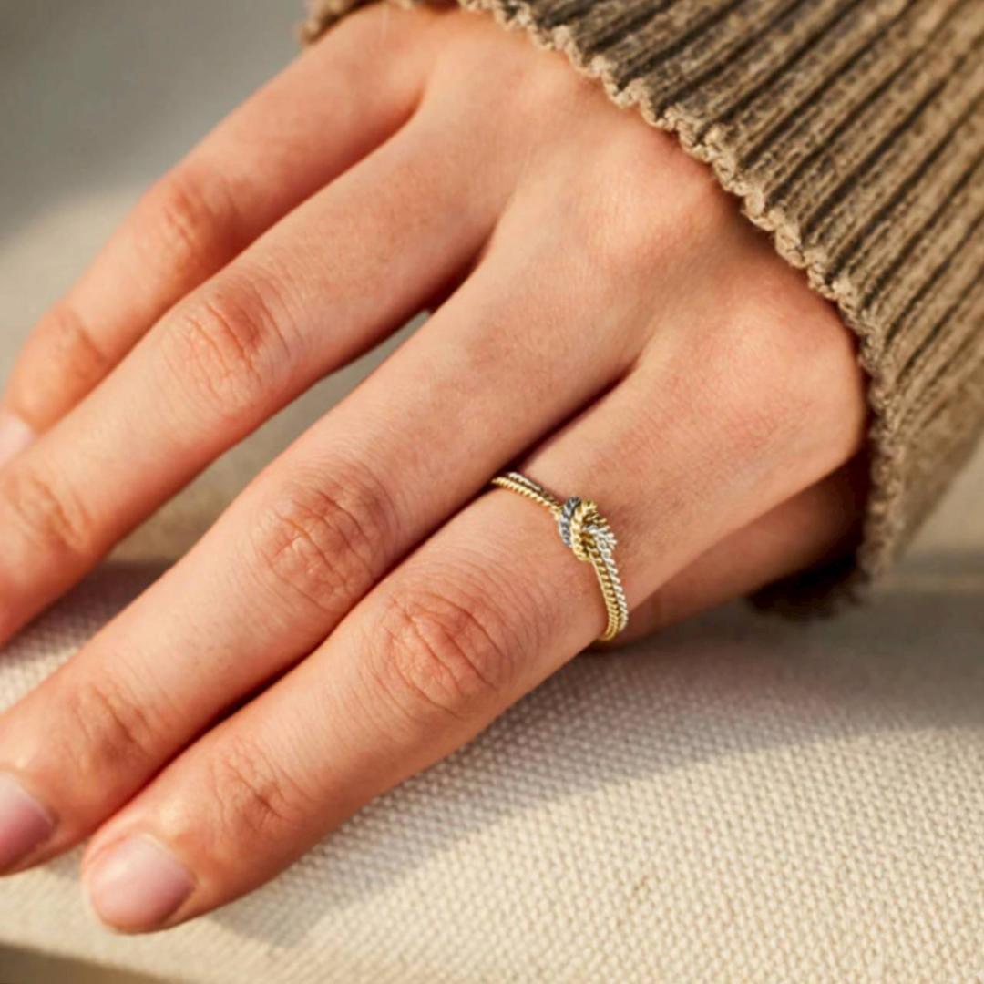 ゴールドとシルバーが結び合う、ラグジュアリーなデザインリングです。| 出价者 | 信用 | 价格 | 时间 |