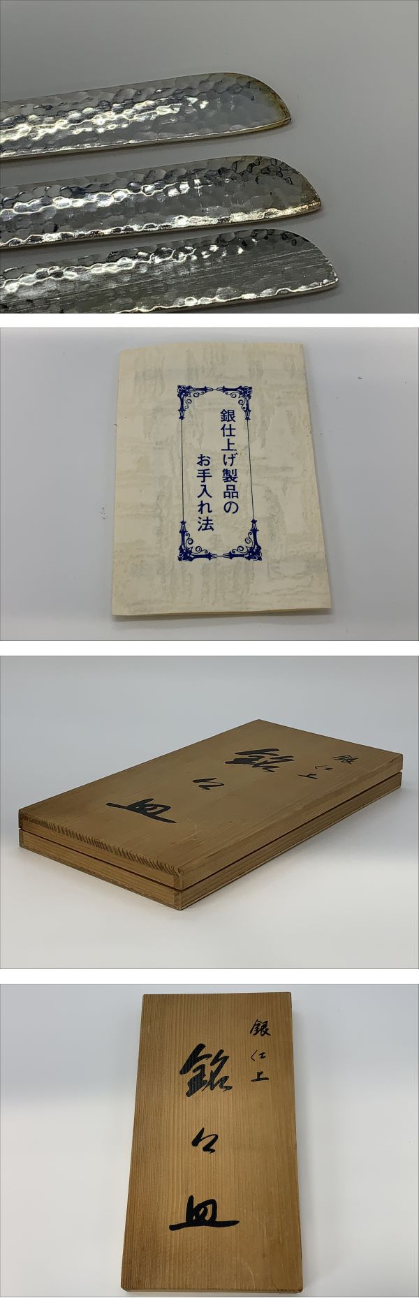 ・サイズ: 銘々皿 12cm×12cm 高さ1.2cm 菓子切り 全長12cm ・自宅倉庫から出てきました。経年品です。銀製品特有の変色、くすみ等ダメージございます。状態に関しては寛容な方のみ入札下さい。・神経質な方、完全品をお求めの方の入札はご遠慮下さい。 ・状態は画像のみのご判断でお願いします。 ・ノークレーム、ノーリターンでお願いします。 ・発送はゆうパック(60サイズ)にて。 ・落札価格+送料=お支払金額となります。 ・土曜日は取引連絡および発送は行っておりません。ご了承ください。 ・いたずら入札防止のため評価が新規の方、または著しく評価が悪い方は入札をご遠慮いただく場合がございます。 | |||