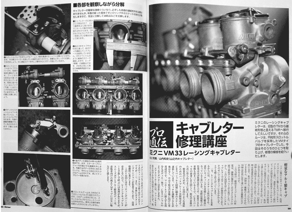 「キャブレター修理 ミクニ VM33 レーシングキャブ 編」が6ページ掲載された雑誌です。 …………………………… ~各部を観察しながら分解 ~各部解説と点検、修正など ~組み立てと調整 …………………………… ○ バイク雑誌OT別冊、一冊の出品です。 ○ 細かい発行年などの質問はご容赦ください。 ○ 程度は目立った傷み等はありません。 よろしくお願いいたします。22a 250306 |