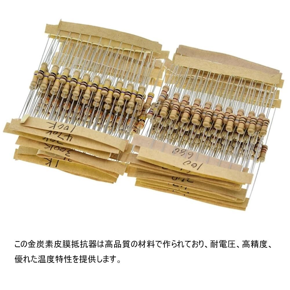 【保管便利】便利な使用と保管のために、抵抗器は透明なプラスチックの箱にしっかりと詰め込まれて、分類されます。各炭素皮膜抵抗器には抵抗値が表示されており、、ラベルを読んで値を識別できます。