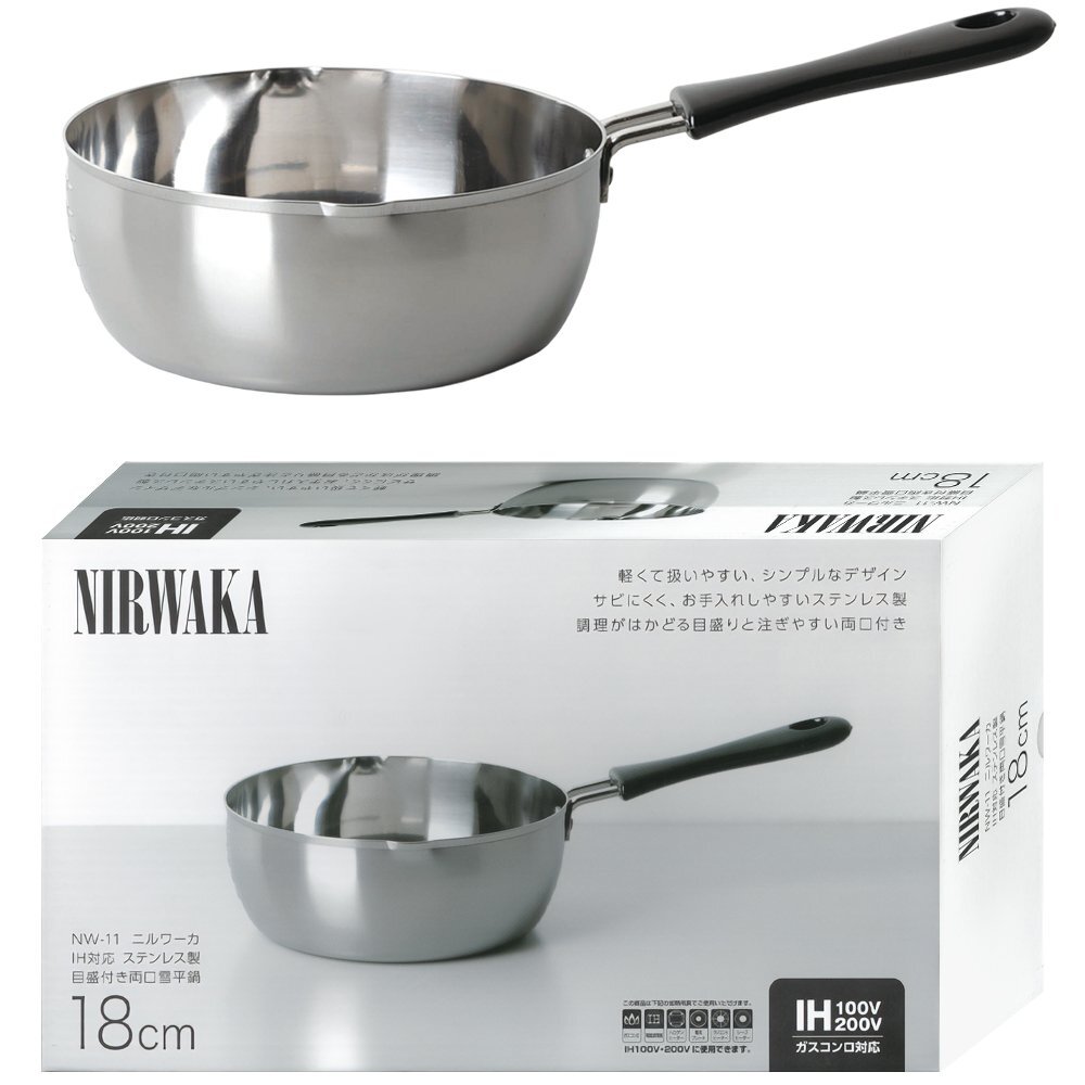 | NIRWAKA -ニルワーカ- IH対応 ステンレス製 目盛り付き 両口雪平鍋 18cm | |