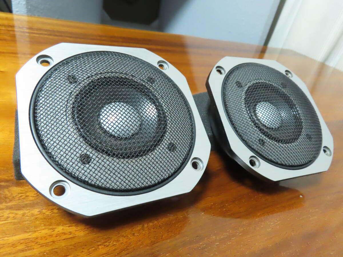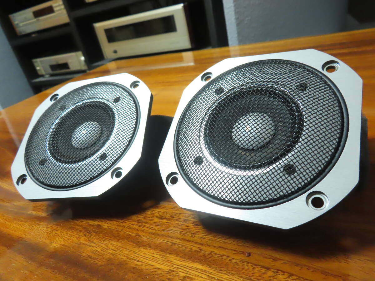 | ●目立つダメージ無く全体的に非常に綺麗な希少な個体です。 ●音質低下を起こす網内部のホコリは丁寧に除去し、綺麗に仕上げてあります。 ●6.6cmのコーン型のスコーカーユニットで、振動板はカーボングラファイト、センタードームにアルミが採用されています。 ●インピーダンス 6Ω ●状態の良いシステムをお探しの方は是非。 | |||