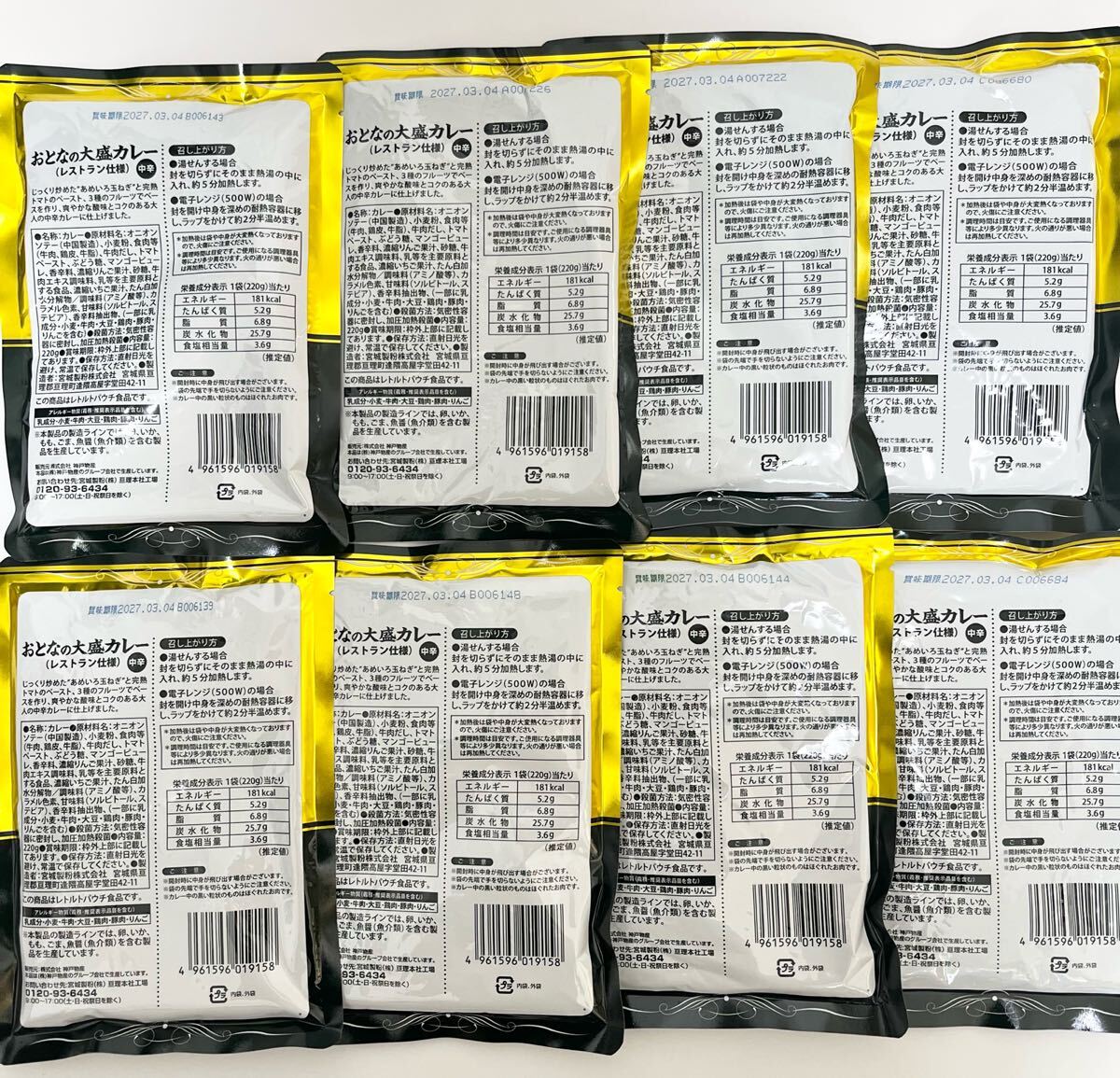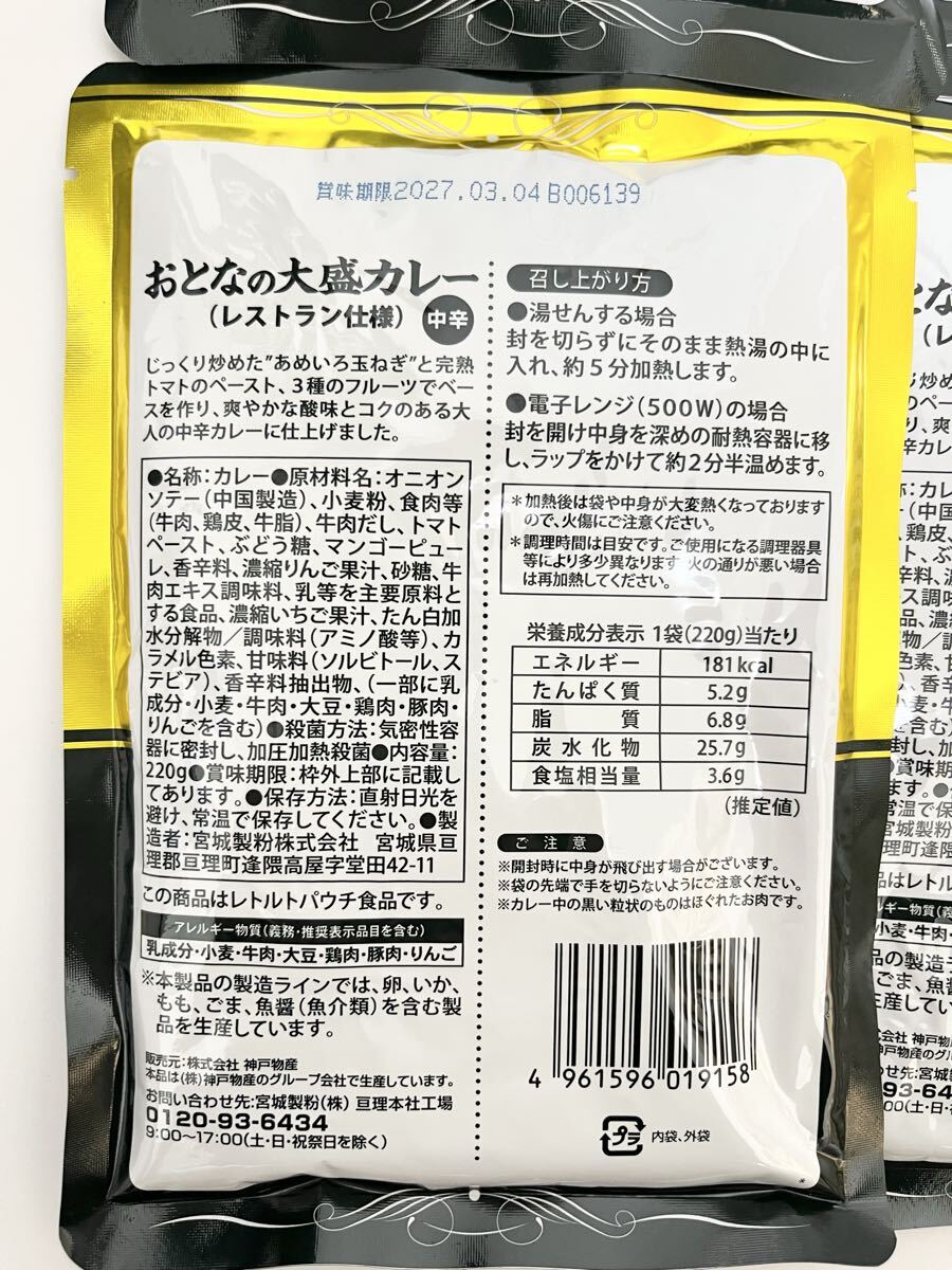 【中辛】神戸物産 レストラン仕様 おとなの大盛りカレー 220g 8個セット