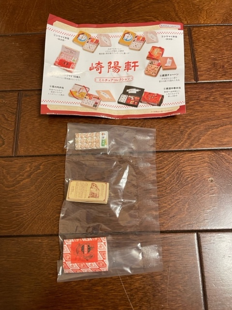 バンダイから発売の「崎陽軒ミニチュアコレクション」全6種のうち「昔ながらのシウマイ 15個入」になります。400円ガチャで、細部までリアルに作られており、食品、弁当フィギュア好きの方には垂涎もののミニフィギュアです。内袋未開封、リスト付きです。