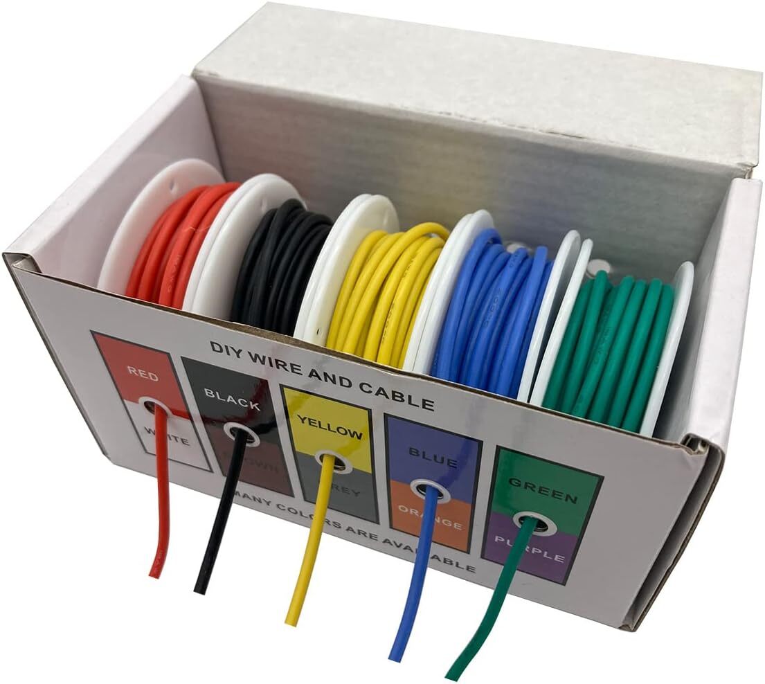 シリコンワイヤー5色×5M、合計25Mのセット 柔らかい高温耐性シリコンワイヤーのため取り回しがとても楽です。 高温耐性のため半田付けでも被覆が溶けることなく扱いやすいです。 定格電圧:600ボルト、定格温度:-60 C-+200 C カラーバリエーション:赤黒黄青緑、白茶灰橙紫 |
