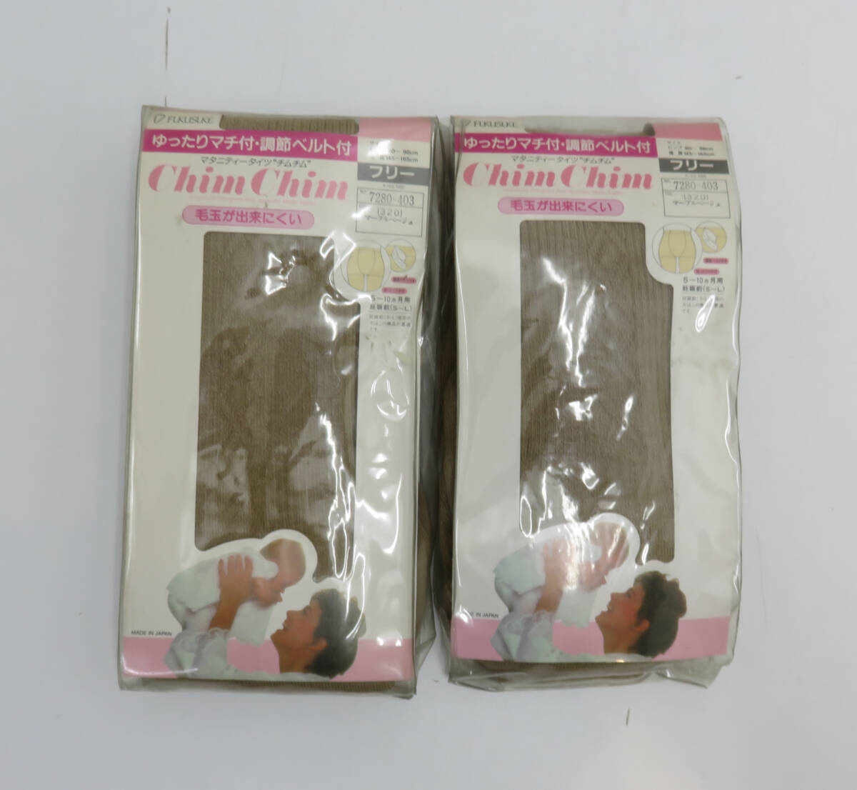 | ☆保管品☆マタニティータイツ チムチム 2足まとめ マーブルベージュ フリーサイズ 5~10ヵ月用 ゆたっりマチ付 調節ベルト付 |