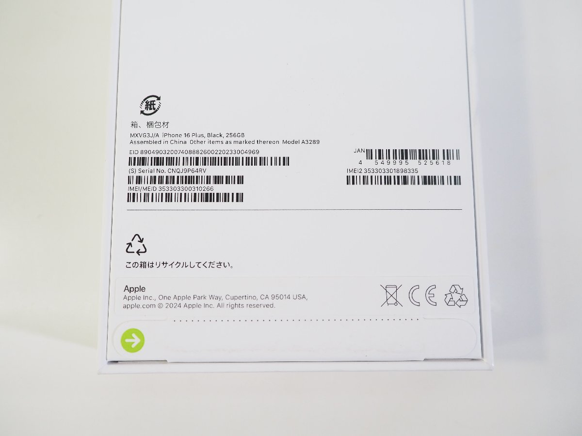 ☆109☆ 【未開封】 Apple iPhone16 Plus 256GB MXVG3J/A A3289 ブラック