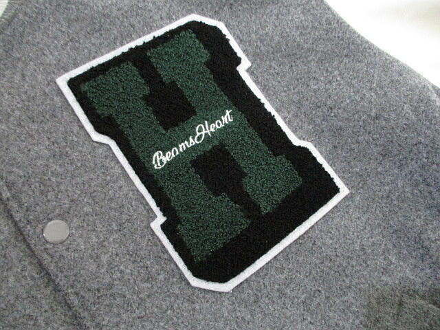 新品 未使用▼ ビームス 中綿入り スタジャン レタード ワッペン グレー 白 Mサイズ メンズ ブルゾン
