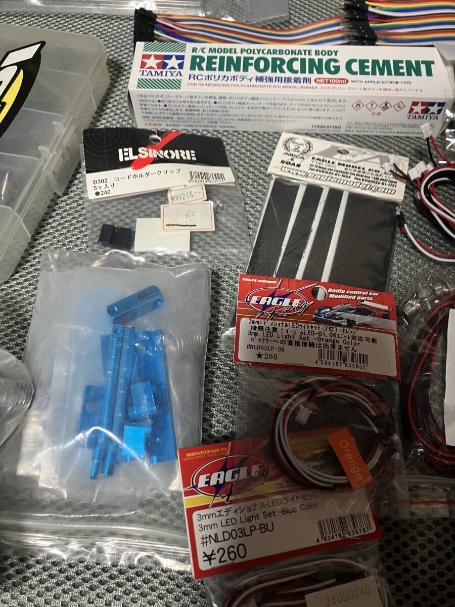 | 商品説明 | ラジコンボディ用に色々買い漁っていたものの詰め合わせとなります。 各種LED、ステルスボディマウント、ウイング、等になります。 点数が多いため、詳細は画像をにてご判断ください。 RC引退にてすべて処分するため、余計ななものも含まれているとは思いますが、不要であれば落札者様にて処分してください。 未開封のものも多いですが、年数も経っていることや動作確認していないものもありますので不良品等の対応は致しかねます。 ※他にもRC本体、プロポセット、バッテリー、工具セッティングツール、RCボディ等も順次出品します。よろしければそちらもご覧ください。 |
