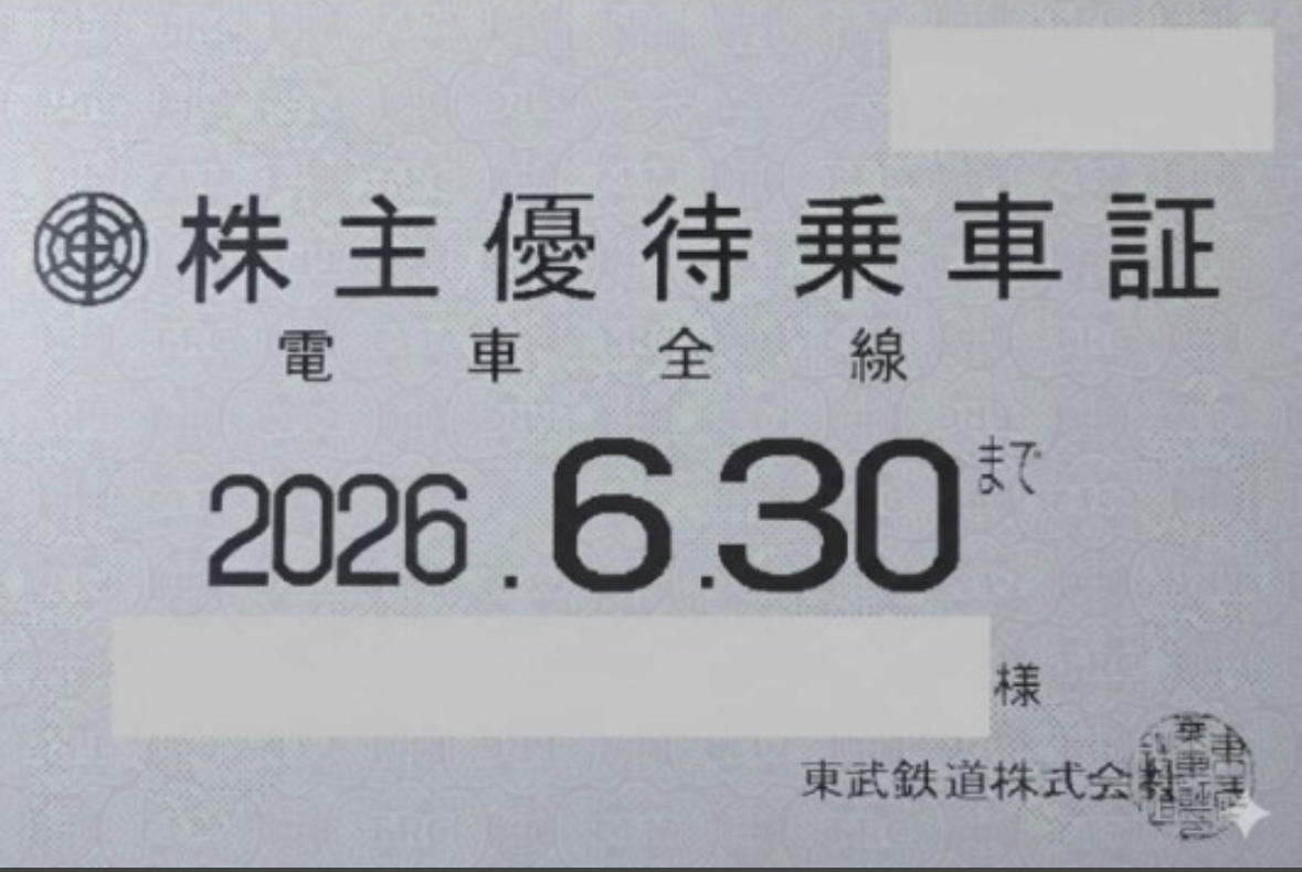 | 商品説明 | 過去に同様商品を何度も出品しておりますので、安心してご入札ください。 ■最新の東武鉄道 株主優待乗車証(電車全線)6ヶ月定期券タイプ1枚を出品します。 ■有効期限:受け取り時から 2026年6月30日まで ■東武鉄道(株)の電車全線に何回でも御利用できる定期券式乗車証です。 ■この乗車証は、株主(5,800株以上)に発行されるものです。 ※カード名義は女性ですが、普通の定期券とは違い、記名人以外でも持参人1名が期間内いつでも有効なので、誰でも利用できます。つまり家族や友人で貸し借りして効率良く利用出来ます。 ■レターパックプラスで送料無料で発送します。 ◆落札後24時間以内のご入金をしていただける方お願いします。 ◆最後まで誠実・確実にお取引させていただきますので、よろしくお願いいたします。 |