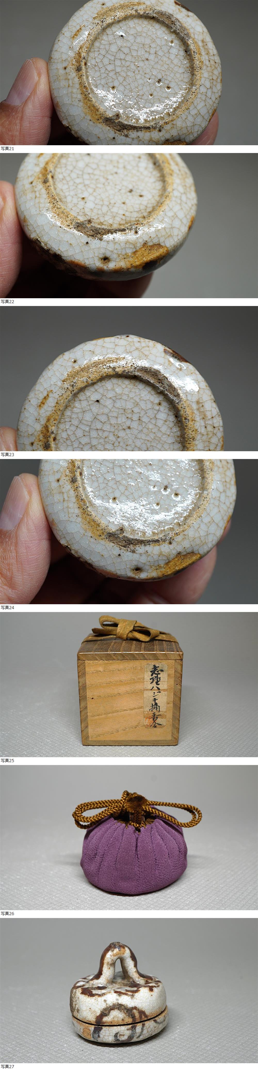 桃山時代・伝世の絵志野ハジキ摘香合です。