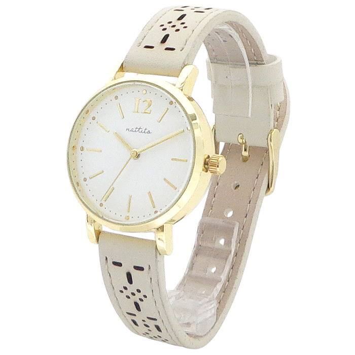 | ベルトに穴を開け、デザイン性アップ!またムレにくく通気性もアップした仕様になっています♪ カラーリングは、ちょっと明るめのくすみマットカラーに仕上げています♪ 文字盤は、シンプルかつ、見やすく、光沢のあるカラーリングのケース・インデックスが特長です♪ |
