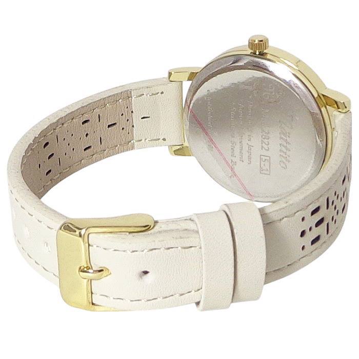 | ◆1/ホワイト◆ ベルト:ホワイト ケース・リューズ・尾錠・針・インデックス:ゴールド 文字盤:ホワイト 裏蓋:シルバー |