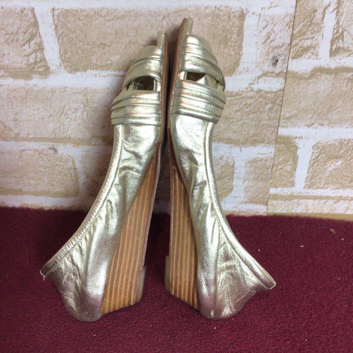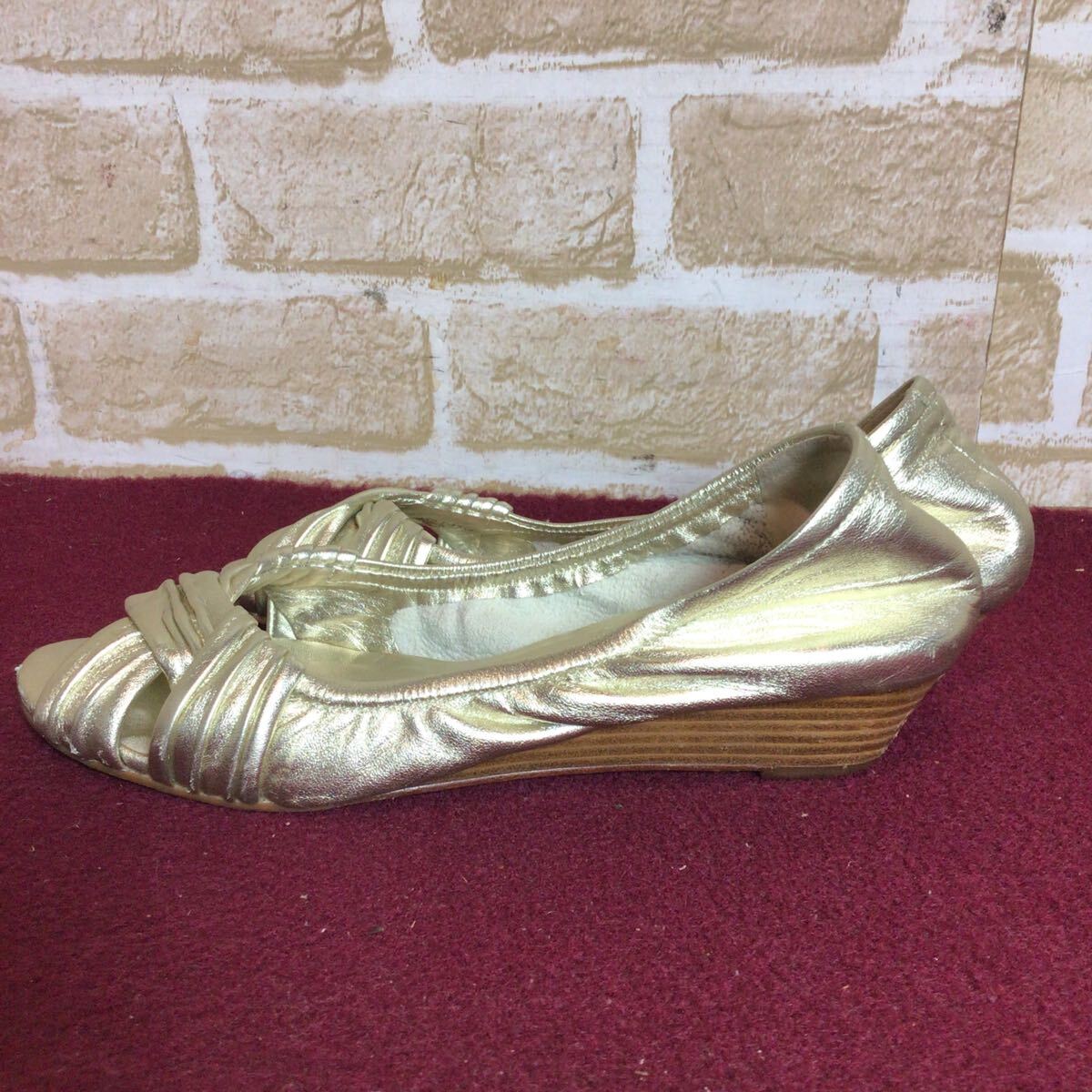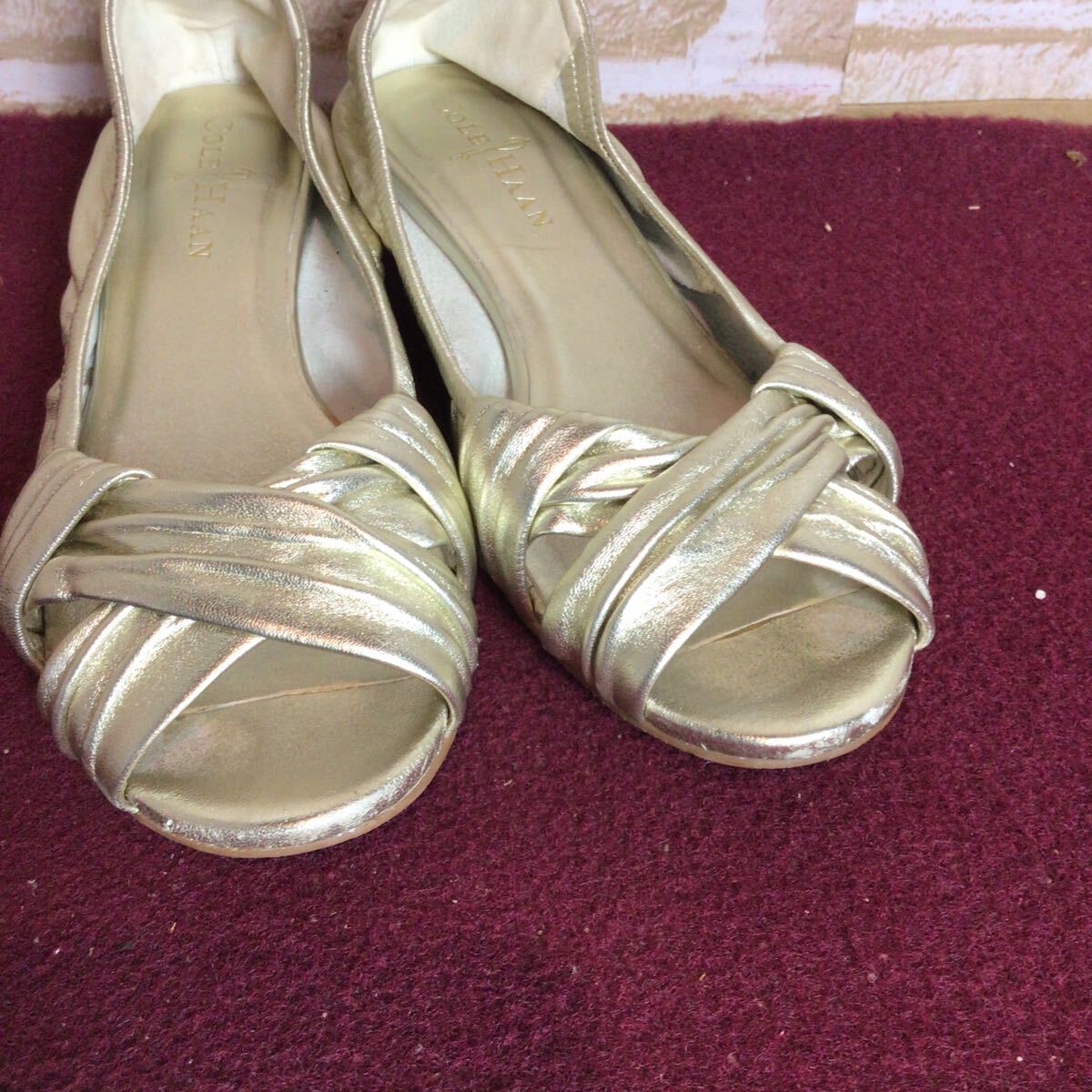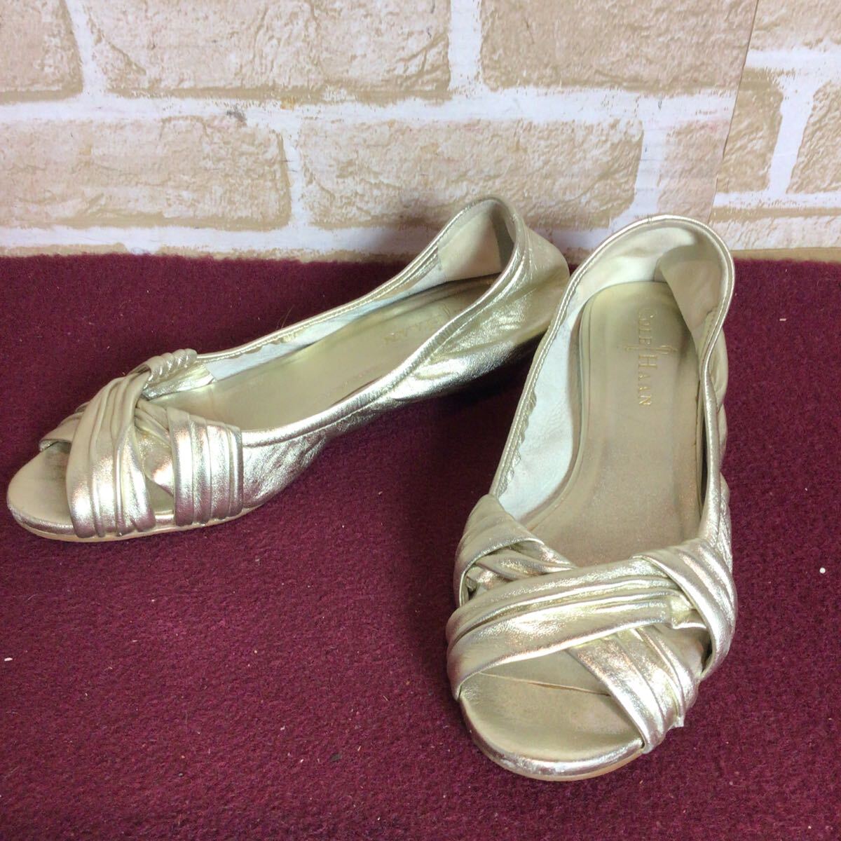 【売り切り!送料無料!】A-322 COLE HAAN!オープントゥパンプス!ゴールド!5 1/2 B!22.5cm位!おしゃれ!ローヒール!中古!| 出价者 | 信用 | 价格 | 时间 |