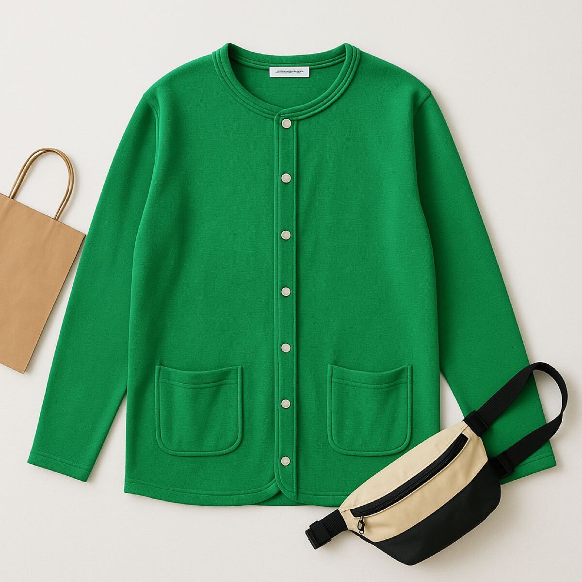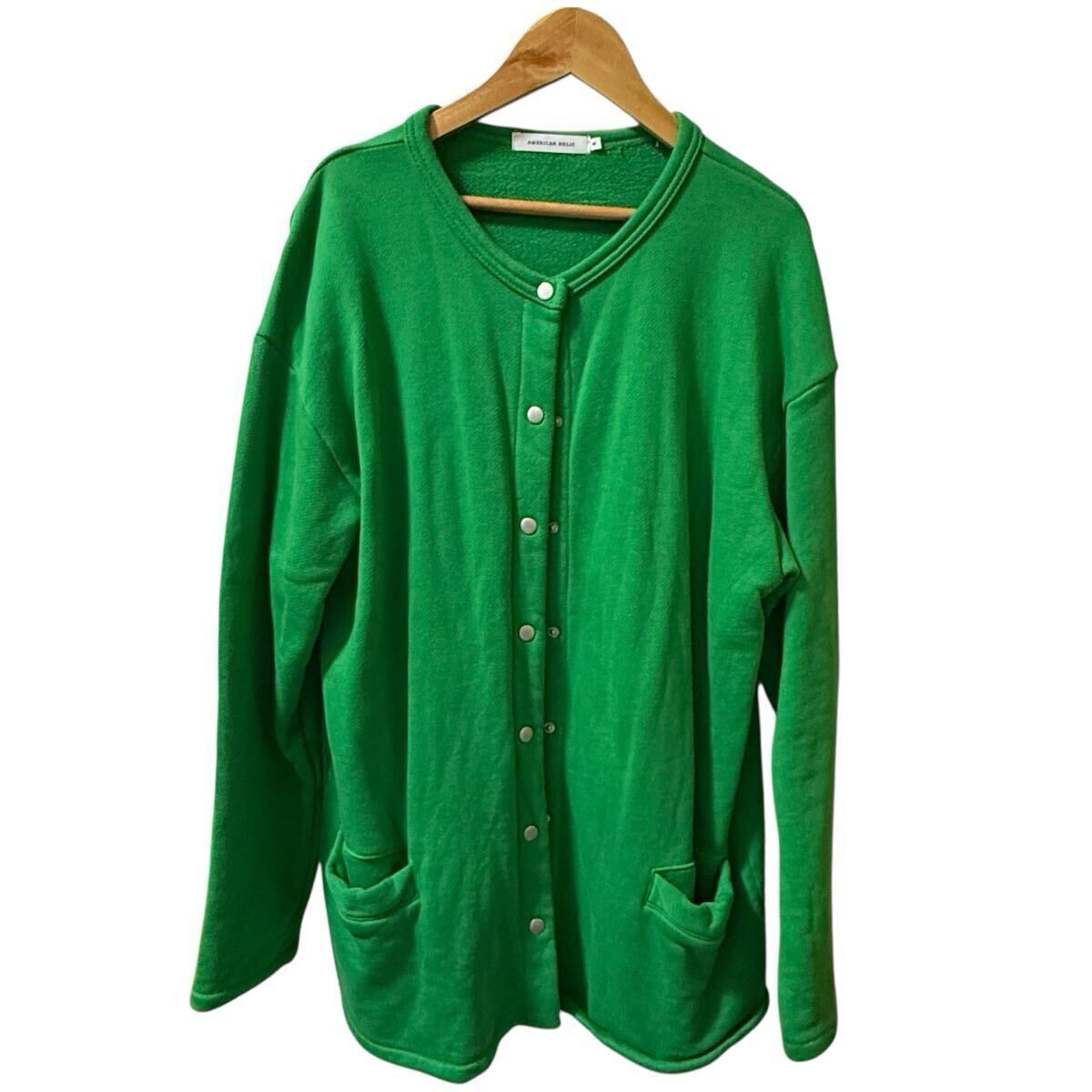 ドットボタン裏毛カーディガン/アメリカンホリック(AMERICAN HOLIC) グリーン