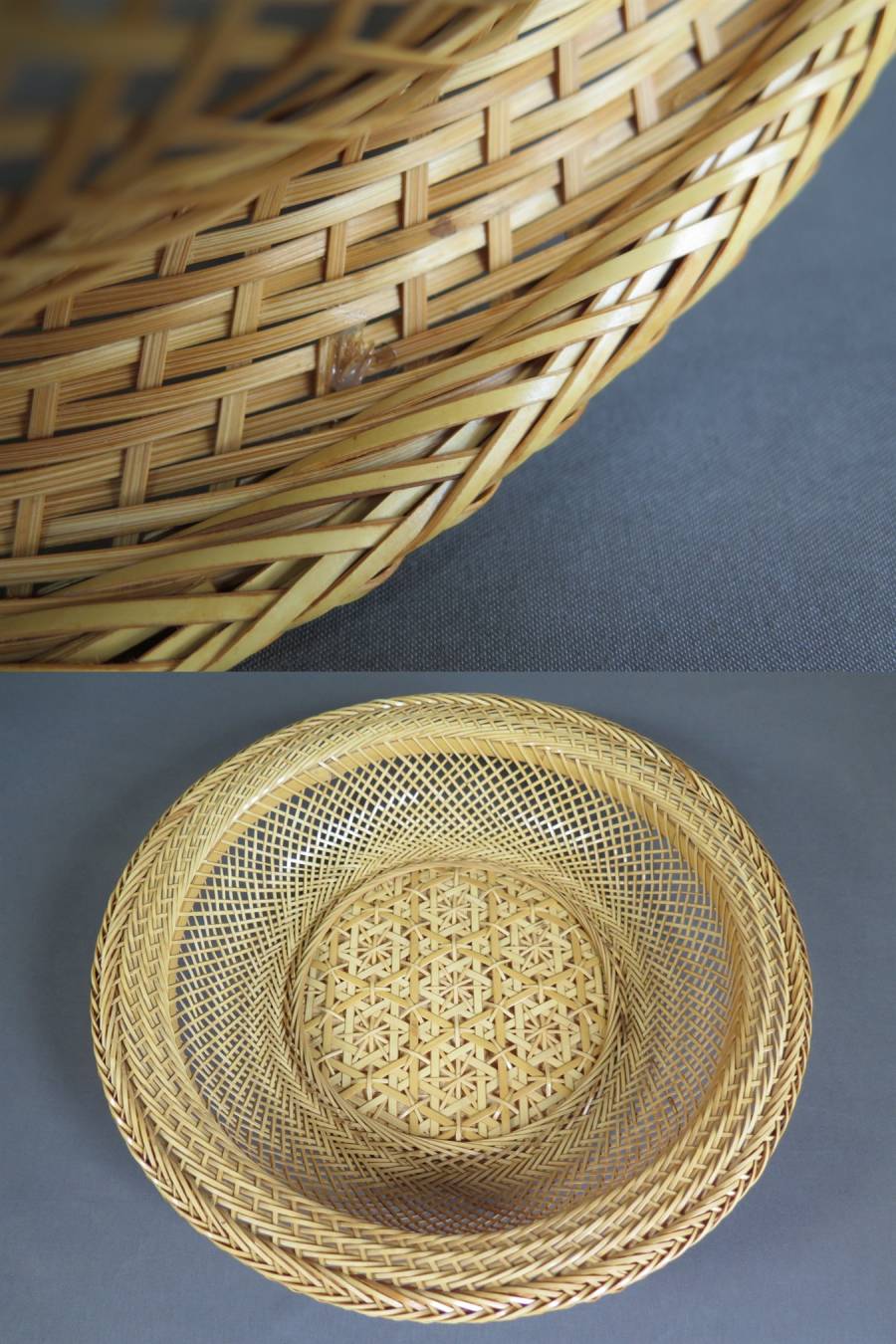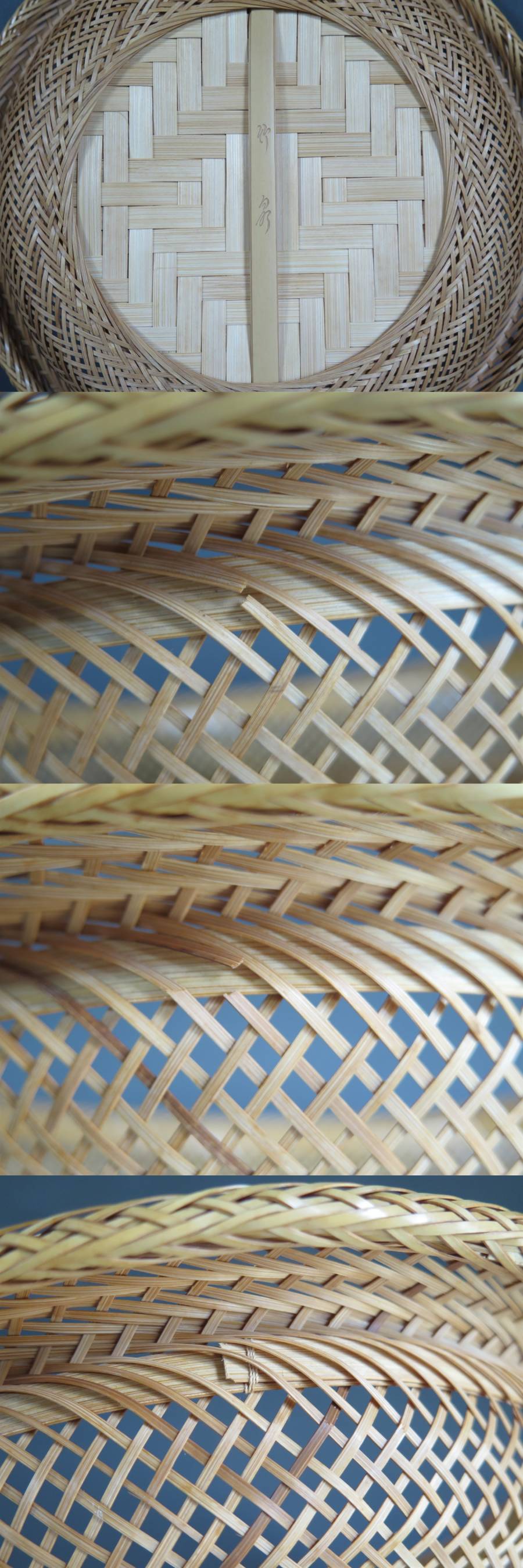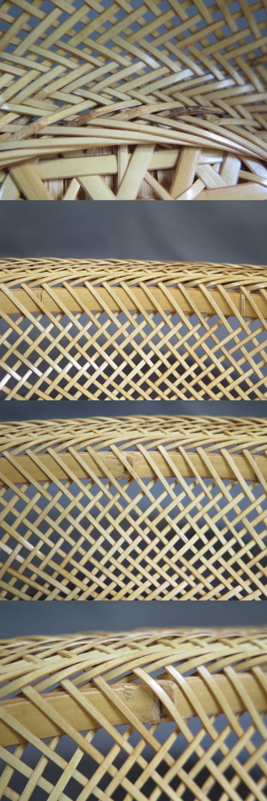 ユーズド並品 天然素材のため、元々節ばった箇所や黒っぽい箇所があります。裏側に2個所竹が切れているところがありますが、表からは見えません(写真参照)。その他、多少のイタミ・スレ・ヨゴレ・経年劣化などがあります。 新品・完全なものをお求めの方は入札をお控えください。 |