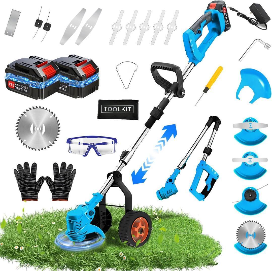 【2025新登場&強化版】充電式草刈り機 草刈り機 芝刈り機 コードレス 4種類の替刃 大容量バッテリー2個 18vマキタバッテリー互換 伸縮式 脱着式補助輪 一台多役電動草刈り機 伸縮&角度調整 補助ハンドル