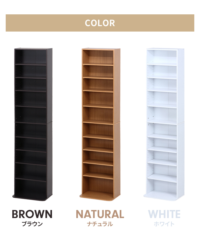 | 本棚 スリム 薄型 大容量 幅42 奥行19~28 コミックラック DVDラック CDラック 収納家具 本 収納棚 リビング収納 ブックシェルフ 収納ラック 多目的ラック スリム本棚 書棚 壁面収納 推し活収納 木製 インテリア 省スペース CD DVD 漫画 コミック 本 リビング 寝室 ワンルーム ブラウン ナチュラル ホワイト |