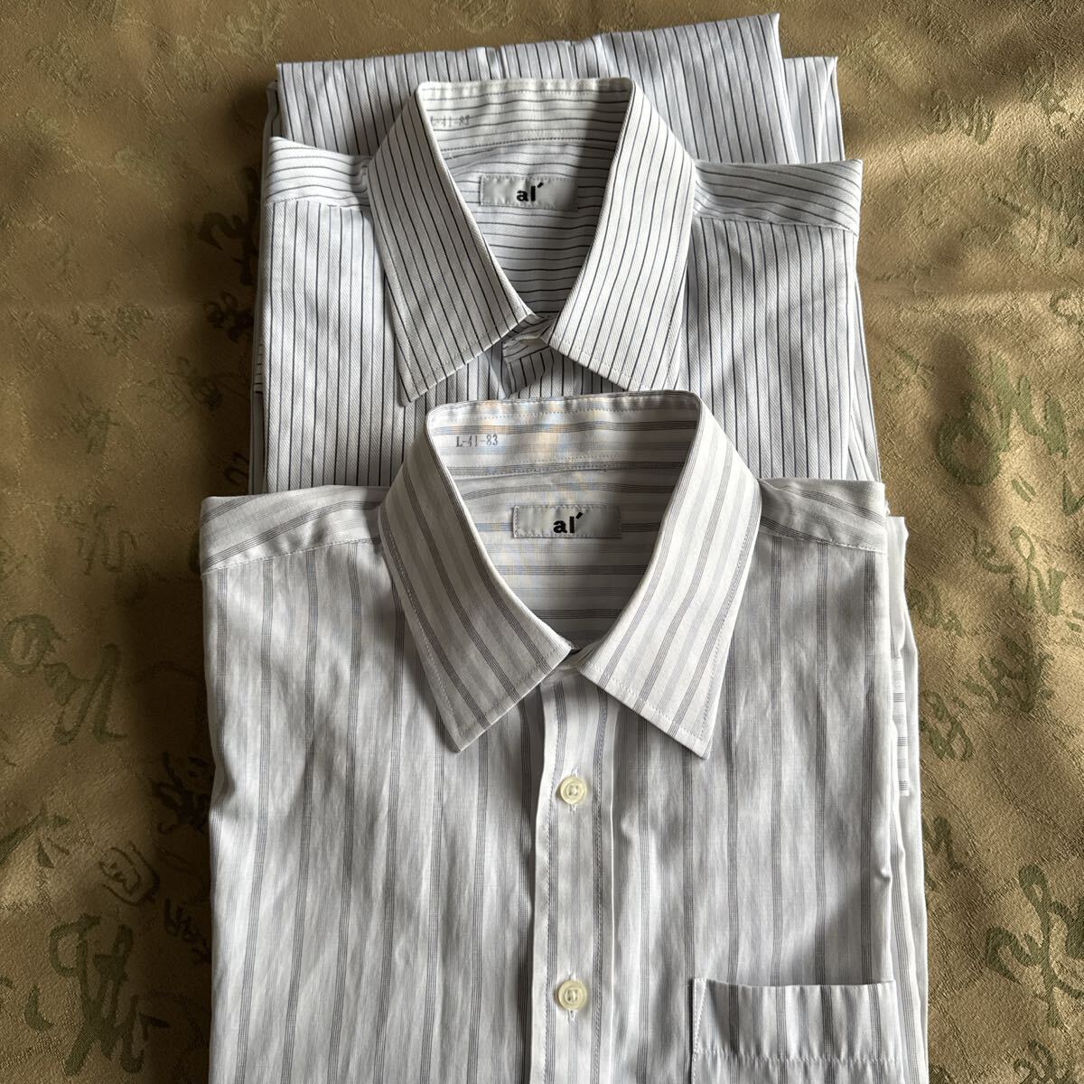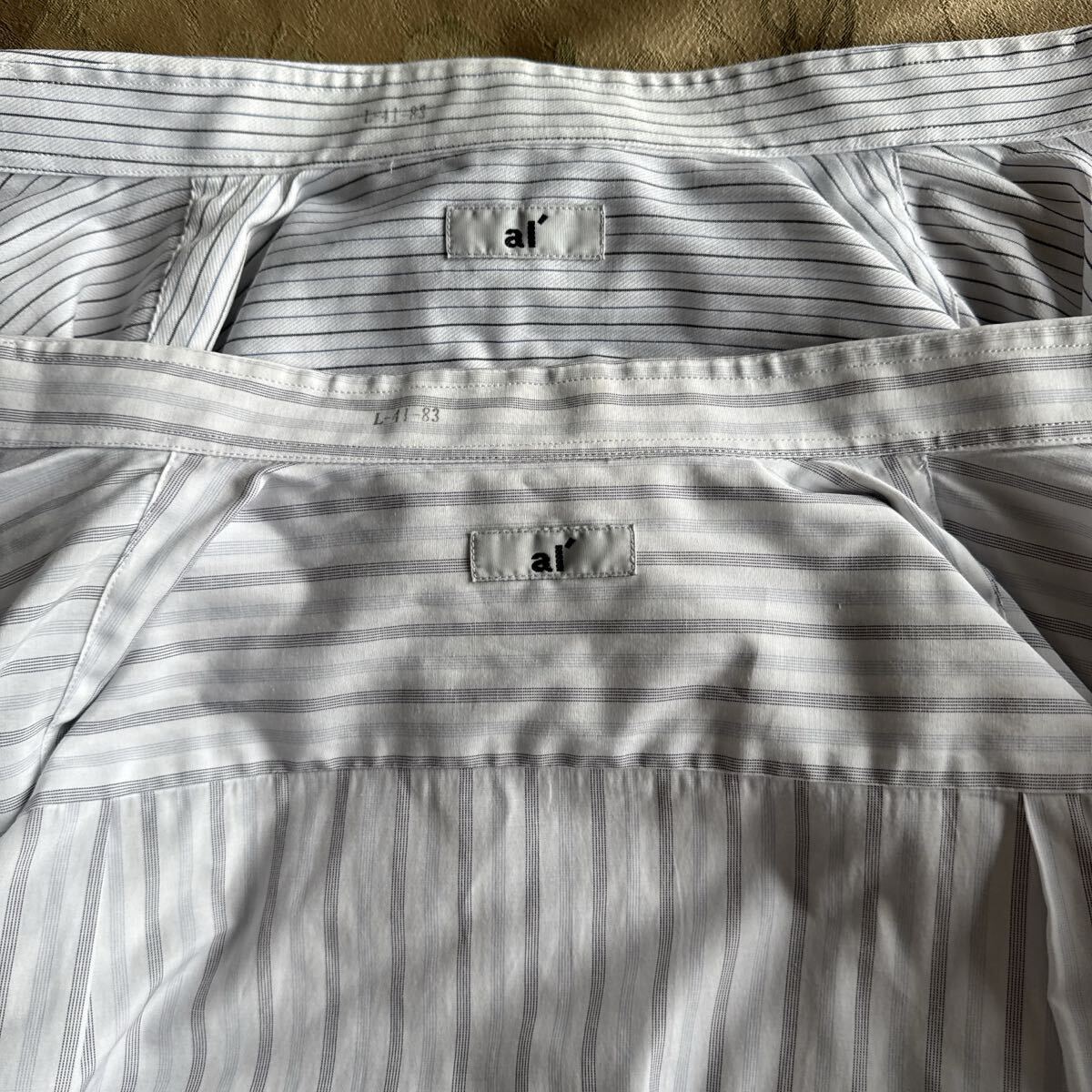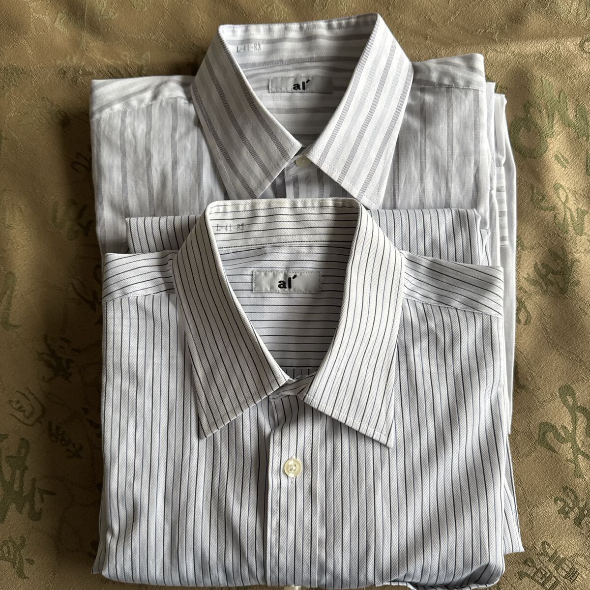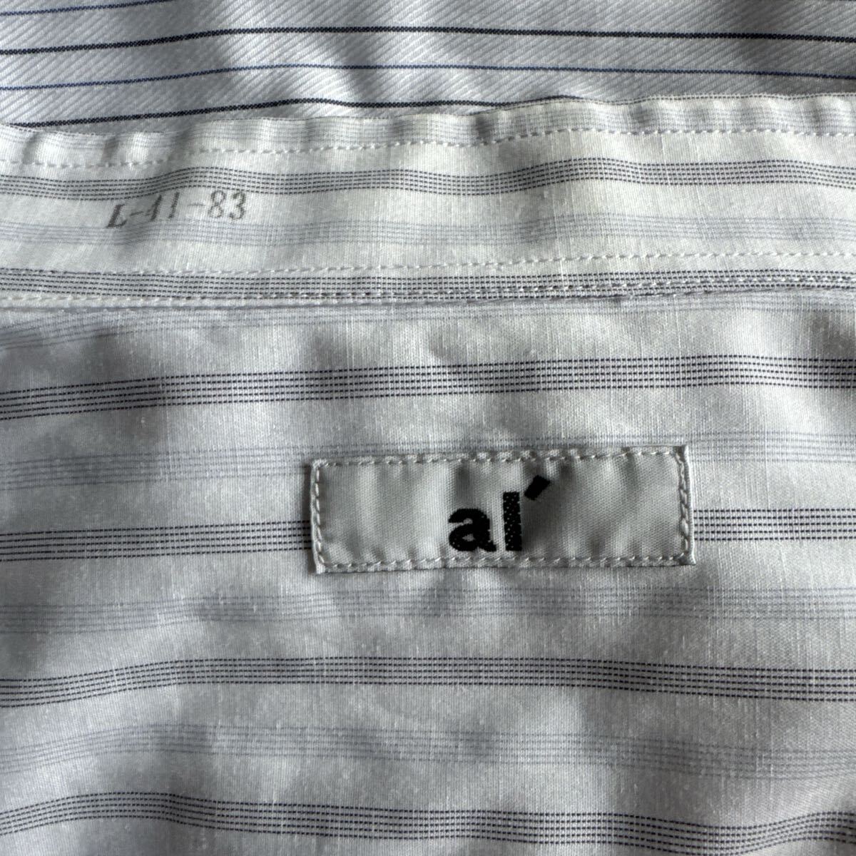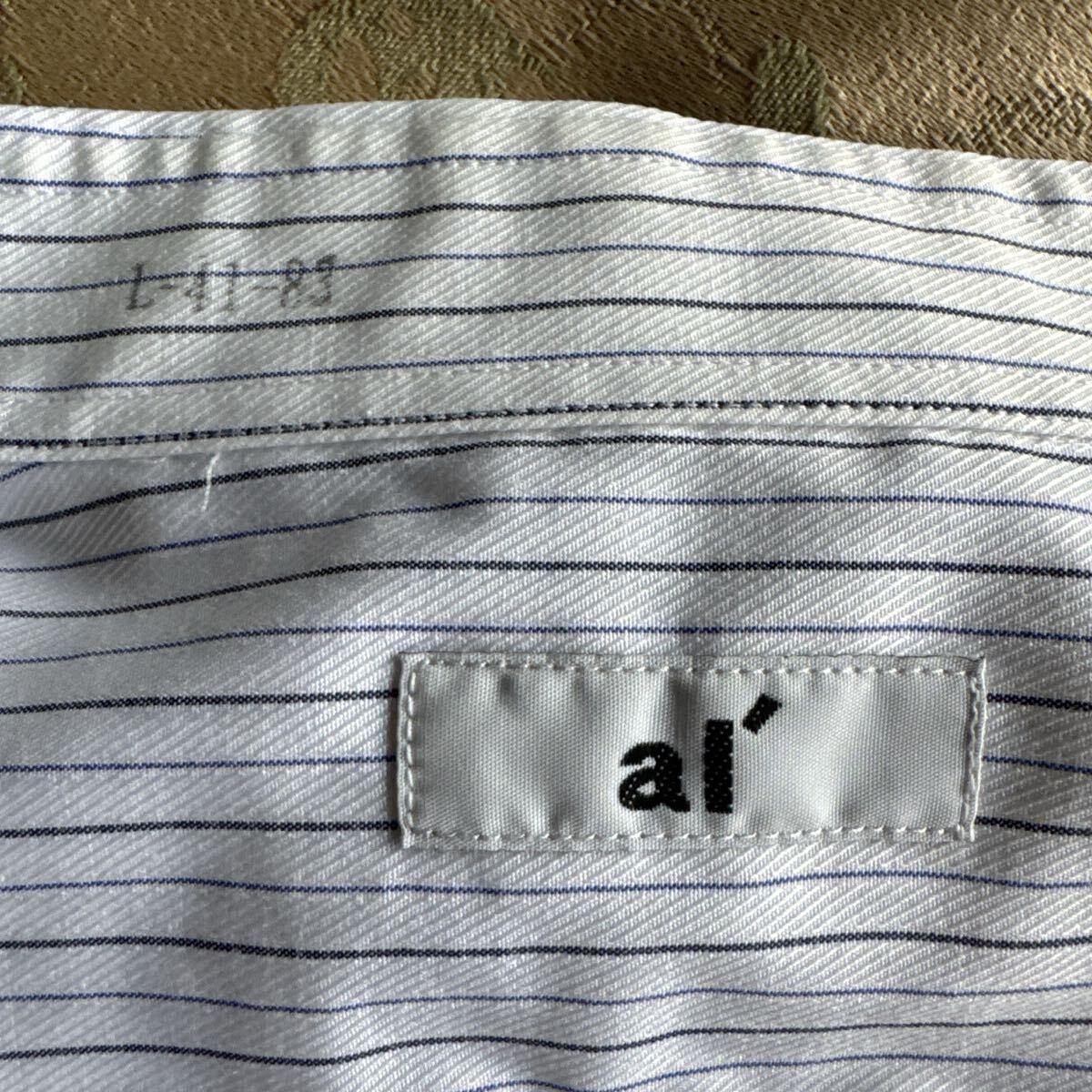 ストライプデザインのホワイト/グレーの長袖シャツ、 - ブランド: ai' -サイズ:41-83(首回り41/裄丈83cm)