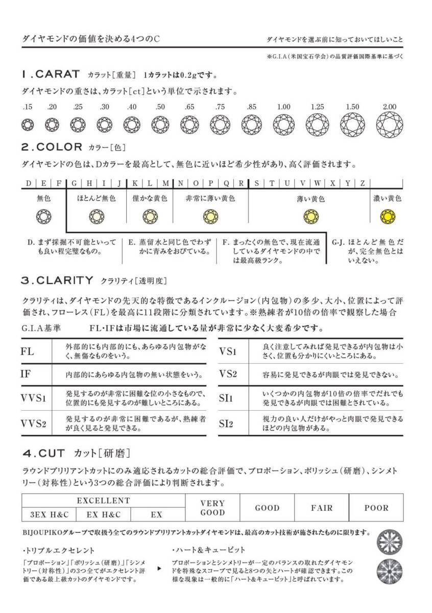 グレーディング | カラー・D クラリティ・VVS-1 カット・3EX H&C |