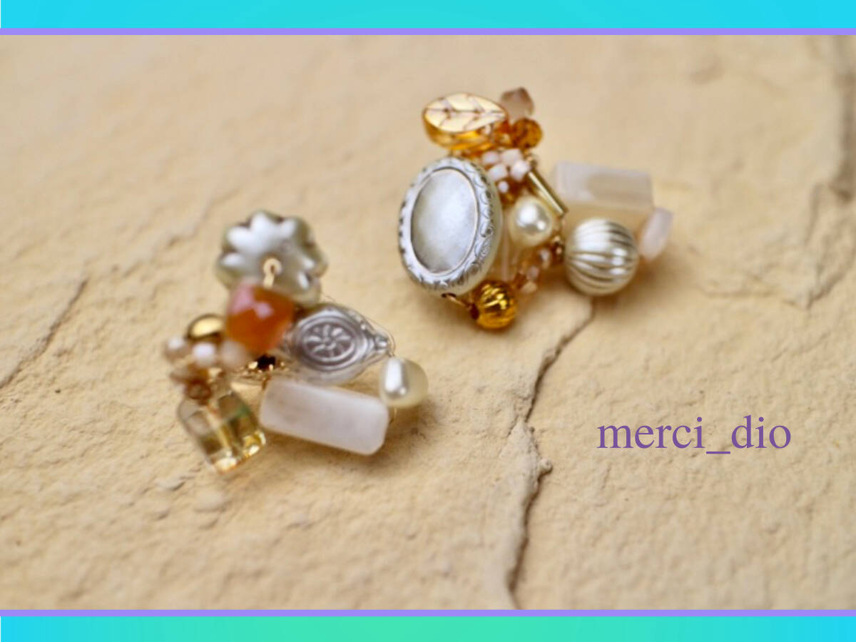 | 発送はレターパック、ゆうパックのみのお取り扱いとなります。レターパック、ゆうパック以外の発送方法をご希望の場合はご入札をご遠慮いただきますようお願いいたします。評価が新規の方は大変お手数ではございますが質問欄より一度ご連絡をいただきますようお願い致します。ご連絡無い場合はご落札後であっても落札者様ご都合のキャンセルとさせていただきますのでご了承下さいませ。お手数ではございますが最後まで必読してご入札、ご落札していただきますようお願い申し上げます。 *atelier57 PARIS* アンティークパーツやチェコガラス、ジルコニアビーズ、ガラスビーズなど多様なパーツを用いた一点もののアクセサリー。シーズンを問わず合わせられるシックな色合いのアンティークパーツが目を惹く上品なデザインです。多様なパーツの組み合わせは一つとして同じものはなく特別感を楽しめるジュエリーです。合わせやすいカラーとコーディネートのアクセントとなるデザインはスタイリングの主役に最適なお勧めのアクセサリーです。着ける角度で違った印象になるアシンメトリーデザインです。 ※アンティークパーツなどの多種多様な素材を使用しており量産品、レディメイド品ではございませんのでイビツな部分や個体差、左右差がございます。アンティークパーツの特徴として小傷や多少の色の剥離などある場合がございます。また一つ一つが繊細な作りのアクセサリーのためその点ご留意いただきました上でのご落札をお願いいたします。 *サイズ* 約3〜4センチ(自宅にて計測しておりますので若干の誤差はご了承下さいませ) 金具部分は18kコーティングです。 *カラー* 画像にて参照下さいませ。 モニター環境による色の違いはご了承下さいませ。 アパレル関係に勤める知人同士でオークションに出品しております。 他にも多数出品しておりますのでよろしければご覧下さいませ。 画像に写っている場合を除き画像の商品以外はタグや袋、品質表示なども付属いたしません。複数点撮影している画像はコーディネート例となりますので特に記載がない限りは出品物は表題記載の一点のみのお取引きとなります。 *発送について* *ゆうパック元払い(発送状況により送料に差額がでる場合がございます。その場合の差額のご請求またはご返金はございません。予めご了承いただきますようお願いいたします。)/地域により送料は異なります。 *レターパック 発送方法に於きましては補償の無い発送方法もございます。補償のない発送方法をお選びいただきました場合、破損、未着等の発送事故が起きましても当方では一切の責任は負いかねますので予めご了承の上、発送方法をお選びいただきますようお願い申し上げます。 | ||