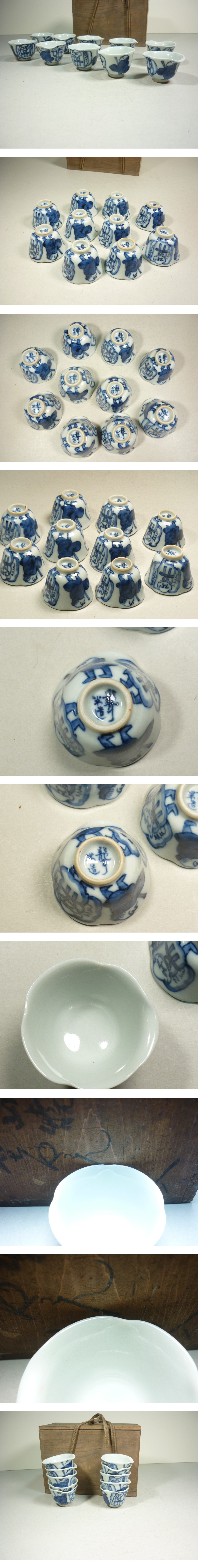 煎茶道具 青木木米 聾米 造 煎茶碗 10客 時代物  内2個ノミホツ有り:::サイズ径5.5㎝高さ4㎝多少の誤差はお許しください、箱は合わせ箱、商品の状態は写真を参考にして下さい、些細なことなどお気軽に質問してください、よろしくお願いします。
