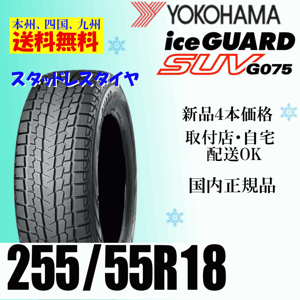 | タイヤ :ヨコハマ アイスガードSUV G075 サイズ :255/55R18 109Q XL 状態 :新品、未使用品 本数 :4本 4本必要でしたら個数「1」で入札してください。 | ||