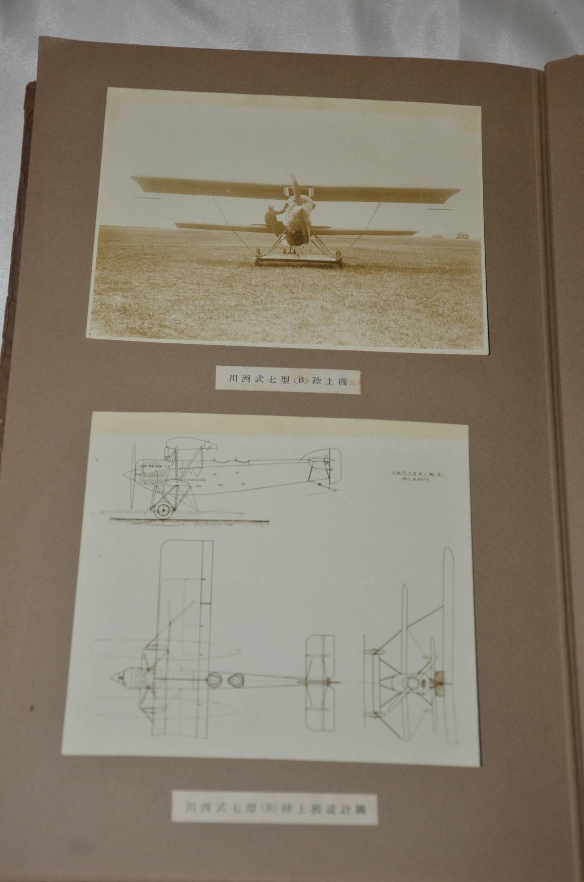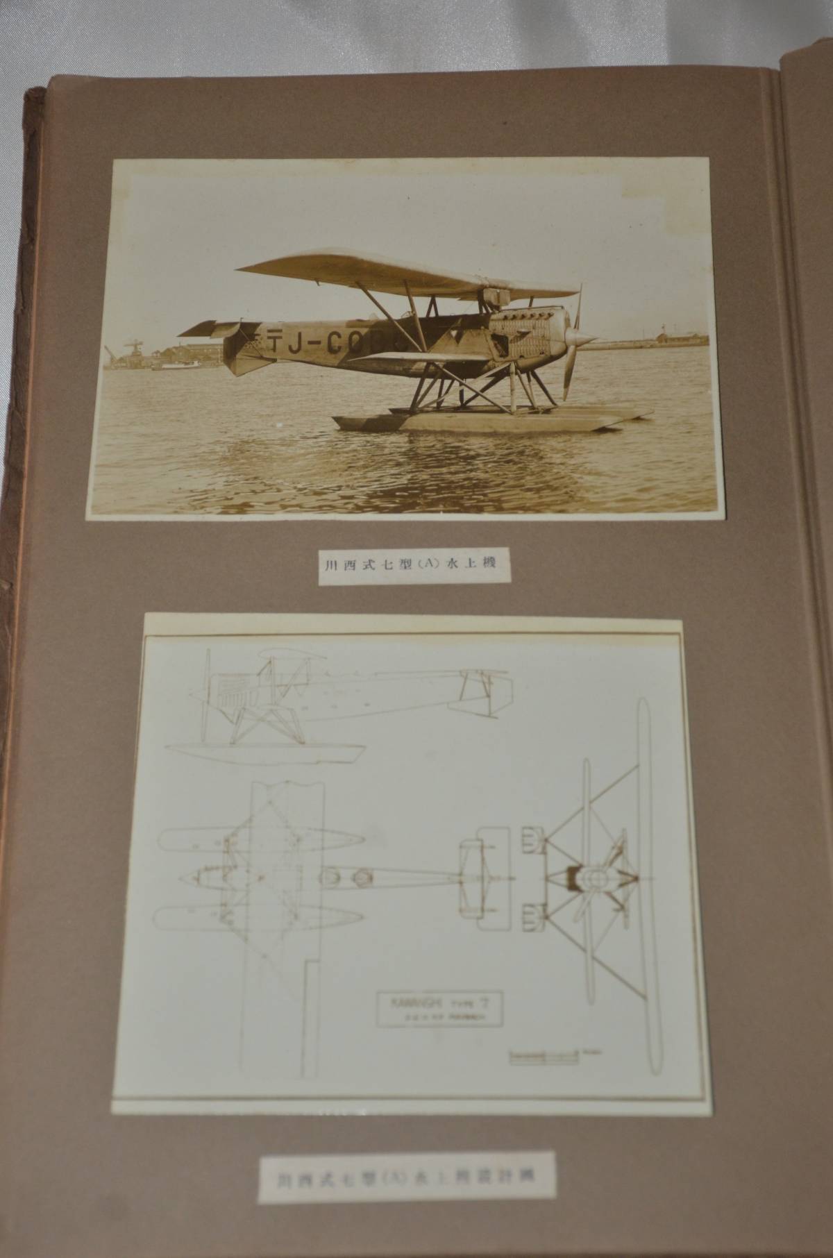 川西飛行機風洞実験写真帖です。全て生写真が貼ってあります。昭和2年発行で、川西飛行機の1、2、3、6、7、8、10、12型飛行機のの生写真が貼ってあります。川西機械の社内写真を含めると23枚あり、風洞実験の物は2枚だけです。中に坂東舜一氏の名刺が入っています。大正7年に中島飛行機の前身である日本飛行機製作所の創設にかかわり、大正9年に飛行機部支配人を務めています。大正12年に日本航空株式会社(JAL)を創設し取締役支配人をしています。昭和2年に川西機会製作所にこの写真帖を作らせ、昭和3年に常務取締役になっています。この写真帖は、陸海軍の航空機担当の将官に、坂東舜一氏が営業活動したときの物と推測します。貰った将官は特定できませんが、坂東舜一氏の名刺を記録の為に挟んだのでしょう。御落札の際の名刺の位置は、古書店から入手した時の位置のままです。名刺に肩書は印刷されていませんが、周知されている人物は肩書は入れなかったようです。写真帖サイズは、13.5センチ×18.5センチ、20枚のページです。本文下の追加写真もご覧ください。ヤマト運輸宅急便で、全国一律700円でお送りさせていただきます。