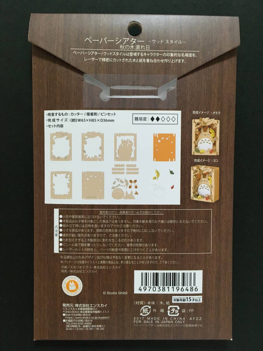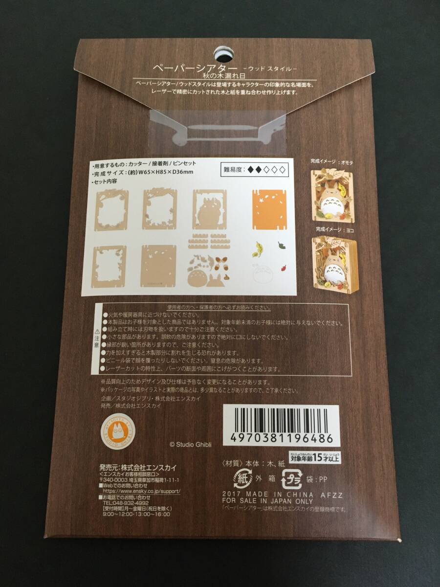 スタジオジブリ となりのトトロ ペーパーシアター☆彡 ウッドスタイル 秋の木漏れ日☆ 新品未開封品 エンスカイ TOTORO