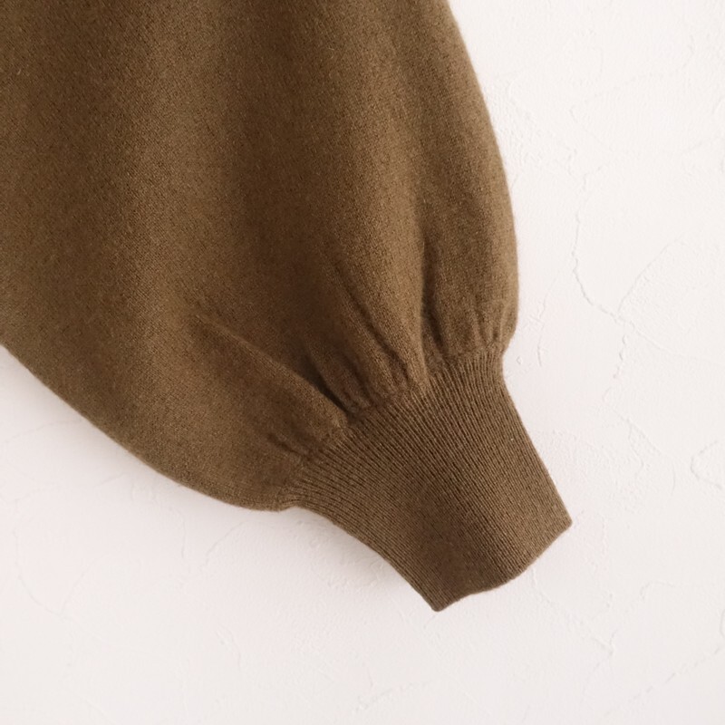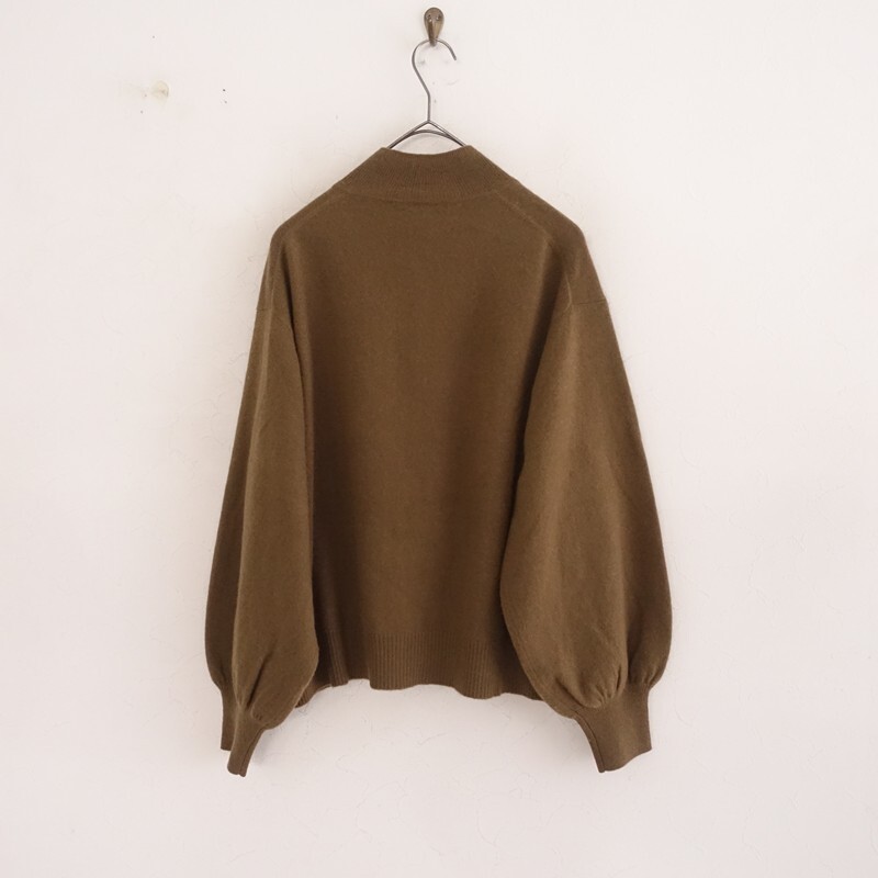 | mina perhonenのyula ハイネックニットカーディガンです。カラーはブラウンで、カシミヤのニット素材で仕立てられています。ボタン開閉で、yulaのテキスタイル刺しゅうがあしらわれ、定価(メーカー希望小売価格) 90,200円の商品です。 |