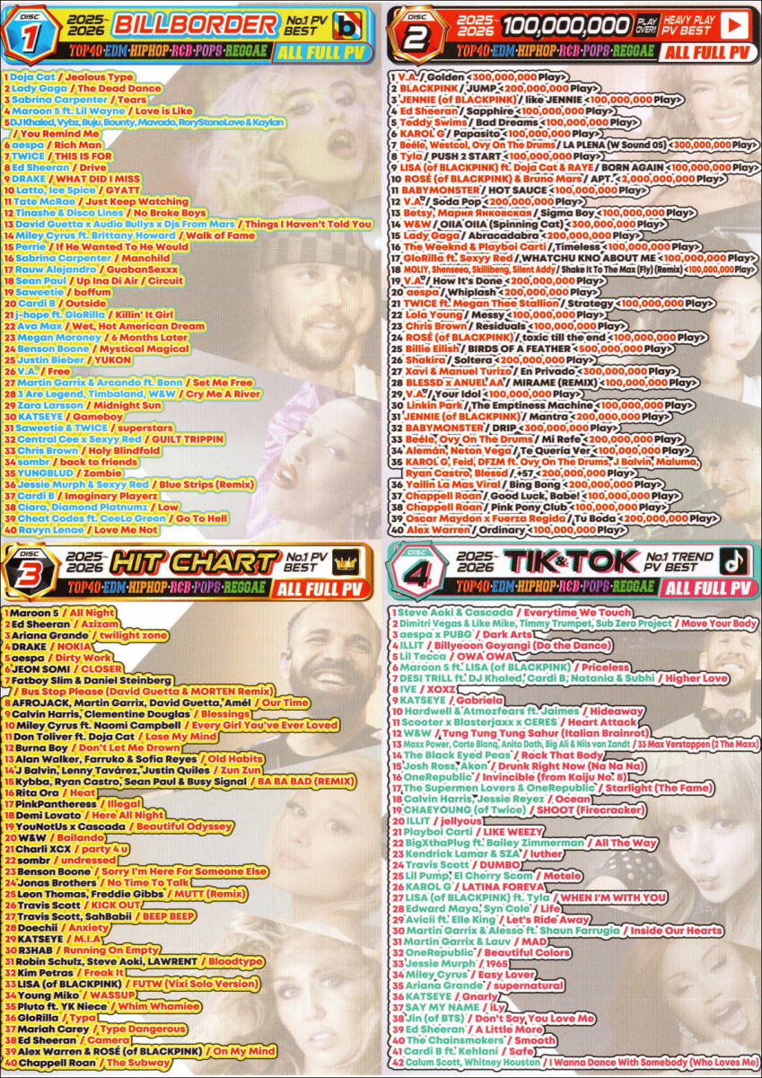 | ●必ず自己紹介の発送日程や休み日をお読みください→※ココをクリック※ ■■■お忙しい中、当方の商品を見てくださりありがとうございます■■■ 是非気に入ったら入札、落札をお願い致します。 ■商品概要■ ●販売元:海外輸入盤DVD(DVD-R) ●リージョン:ALL ●ディスク枚数:4枚 ●収録曲:162曲 ●収録時間:約480分以上(8時間以上) ■※商品内容&状態※■ ※ここから商品内容までは必ずお読みください※ (1)、当出品のPV系商品は不定期ですが値段が変動する場合がありますのでご了承お願い致します。 (2)、ここへ記載しようかと迷いましたが、あまりにも常軌を逸する行動と内容でしたので記載致します。 ●複数のIDを使い完全自作しているコピー販売者がおり嫌がらせの如く当方が販売すれば数時間後にはエプソンのプリンターで自作し値段も数十円安くして出品してきます。そいつからの購入には気をつけてください。なぜそんな奴から購入するのか?理解に苦しみます。 ●私の方も販売者、落札者様への動向に目を厳しく光らせて頂きますのでご理解ください。 複数の善意ある落札者(お客)様からの情報で発覚しました。 恐らく当方の事を言っているであろうと?(記載されている値段設定など)思われる出品者がいるとの事で連絡を受け独自に調査した所、どうもこちらので商品説明に偽物、コピー品、粗悪品、犯罪者、購入するなとか言われようのない事実無根の暴言や侮辱発言を記載している出品者が確認されております。 ●しかも複数のIDを所持しており、同一人物の自演、また仲間と結託し嫌がらせ落札をしてきました。その内の一人は同業者で筋が通らない陳腐なクレームをつけ妨害をしてきました。ID、内容、日付、住所、氏名は全部証拠として残しており然るべき場所で争っても良いぐらい確実な証拠として証明ができます。 ●当方が値段を変える度に同じように値段変更、そして終了時間も当方と同じ時間帯に合わせる、注目課金もイタチごっこのようにマウントを取りますので間違いなく監視されていて控えめに言って凄く気持ちが悪いです。 ●最近は新商品の輸入版を当方か他の人が出品した時だけ慌てて自作コピー制作をし販売を始めますので行動もいちいち気持ち悪いです。 ●当方は確実な「評価と実績」がありますので当方より「安い」からと言って目先欲購入や翻弄されないようにしてください。 ●こちらの商品は新品になります。 ●海外宣伝試供用の商品で輸入盤ですのでDVD-R仕様商品になります。 ●当方の販売商品は海外輸入のDVD-R盤でプレス盤とはディスク品質等は違います。画質や音質が悪い粗悪品コピー品と言われの無い嘘偽りを記載している完全自宅製作のコピー販売者の方がおられますがその人の評価を見れば一目当然ですが悪評が目立ち粗悪品を販売しています。当商品の画質、音質、収録内容のこの3点だけはプレス盤の方と何一つ変わりません。惑わされないようにしてください。 ●一般販売用プレス仕様と違い海外SHOP側が店で流したりする専用の宣伝試供用のDVD-R盤になります。 ●当方が仕入れ時に検品はしていますが、輸入時の税関検査時に微々たる傷などができたりし、これは避けれないのでご了承ください。 ●また製品の品質上、希にディスクレーベル面に微々たるインク汚れが付着している場合がありますが不良ではありませんのでご理解ください。 ●DVDパッケージ&ジャケット紙付き、ディスクタイトル印刷商品になります。 ●DVD-Rは良好ディスクにも関わらず機器相性で上手く再生されない場合があります。 ●DVD-Rになりますのでプレス仕様と違い完璧では無い商品と言う事のご理解をお願い致します。 ●機器相性や機器性能を除き、ディスク不良の場合のみ商品到着から14日以内であれば新品交換に対応致します。 ●収録曲は画像掲載していますのでお手数ですがそこより確認をお願い致します。 | ||